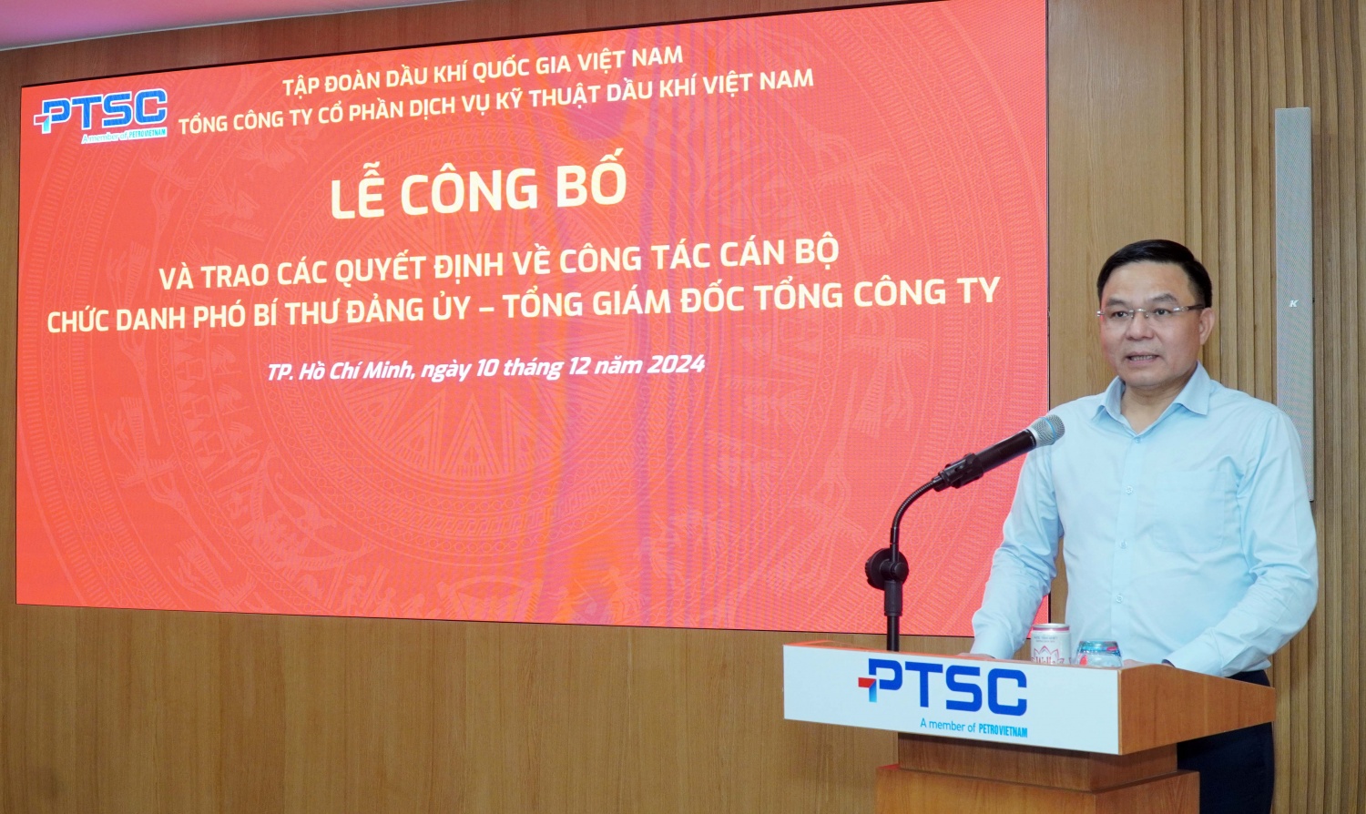 Ngày 10/12/2024, tại TP.HCM, Tổng CTCP Dịch vụ Kỹ thuật Dầu khí Việt Nam (PTSC) tổ chức Lễ công bố và trao các quyết định về công tác cán bộ, chức danh Phó Bí thư Đảng ủy, Người đại diện phần vốn Tập đoàn Dầu khí Việt Nam (Petrovietnam) tại PTSC và Tổng Giám đốc PTSC.