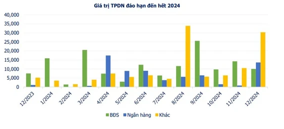 Không chỉ với các doanh nghiệp đã chậm trả, áp lực thanh toán vẫn đang hiện hữu với các doanh nghiệp. Theo thống kê của Hiệp hội Thị trường trái phiếu Việt Nam (VBMA), nửa cuối năm 2024, ước tính sẽ có khoảng gần 140.000 tỷ đồng trái phiếu đáo hạn, phần lớn là bất động sản với gần 59.000 tỷ đồng, chiếm tỷ trọng 42%.