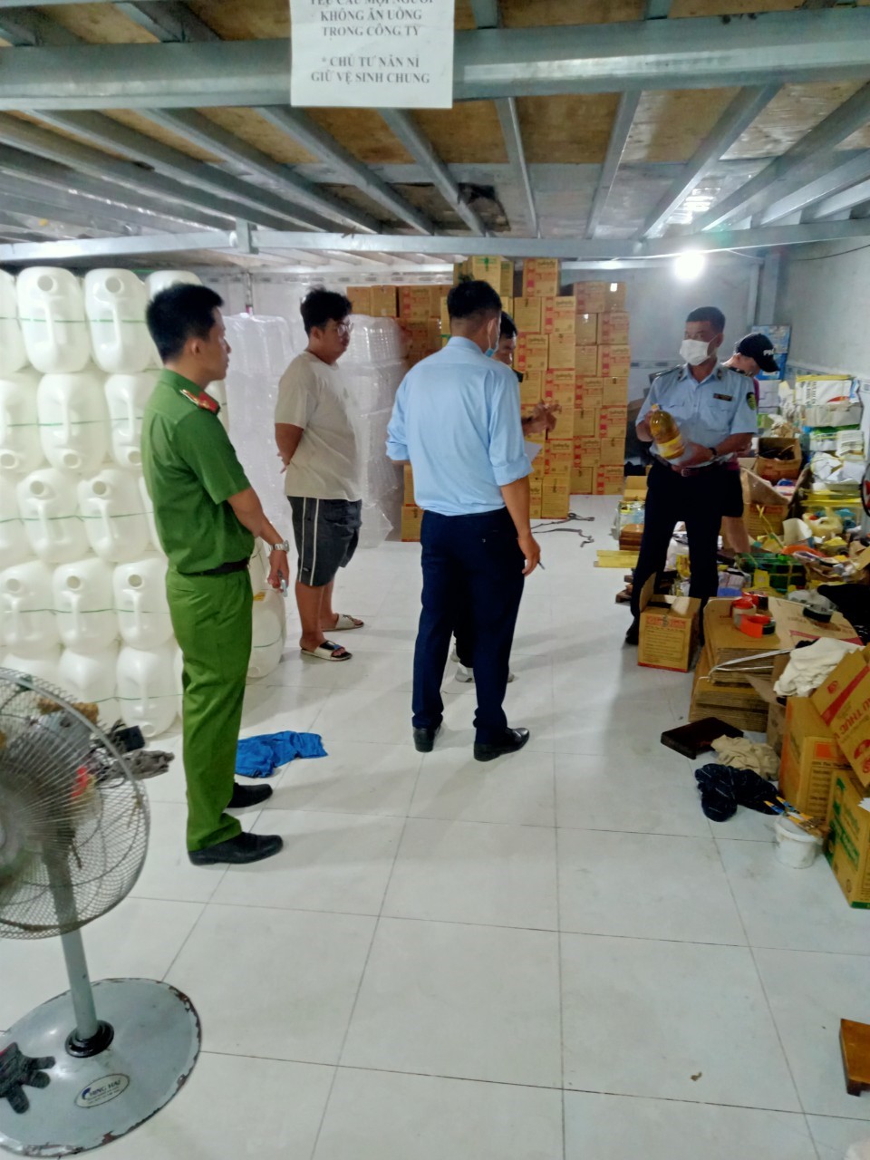 Ngoài ra, lực lượng chức năng còn phát hiện Công ty TNHH MTV Q.B.M đang hợp đồng, nhận gia công, sản xuất dầu thực vật cho một doanh nghiệp có địa chỉ tại thành phố Hồ Chí Minh. Công ty TNHH MTV Q.B.M sản xuất theo công bố chất lượng của bên thuê gia công. Số lượng hàng hóa thành phẩm tại thời điểm kiểm tra là 3.360 lít (120 can, mỗi can 28 lít), có nhãn hàng hóa đúng theo quy định, trị giá hàng hóa 92,4 triệu đồng. Đoàn kiểm tra cũng thống nhất lấy mẫu để phân tích các chỉ tiêu chất lượng.