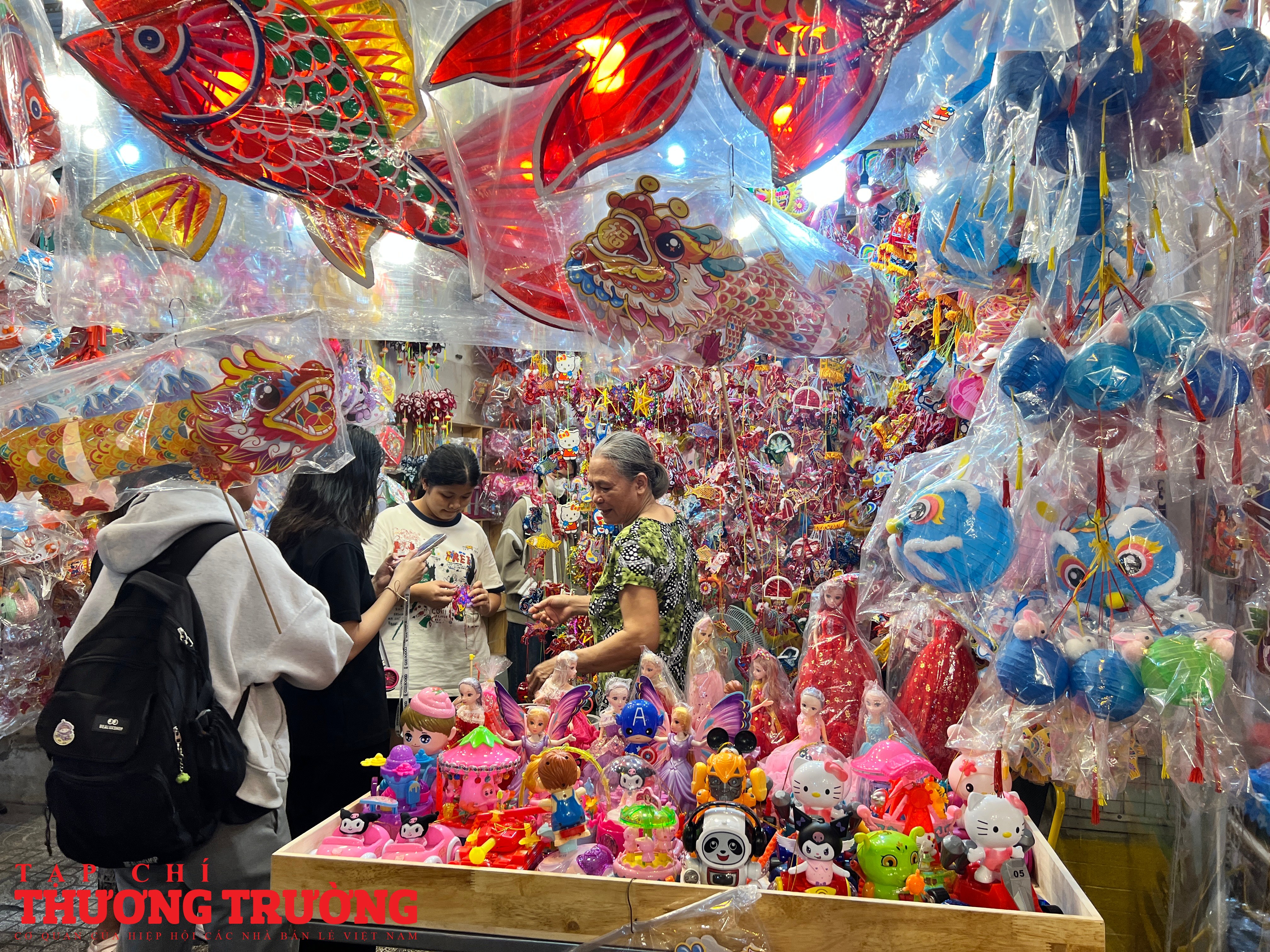 Những chiếc đèn lồng giấy kiếng đủ hình dáng – cá chép, ngôi sao, thỏ ngọc – gợi nhớ ký ức tuổi thơ của bao thế hệ.
