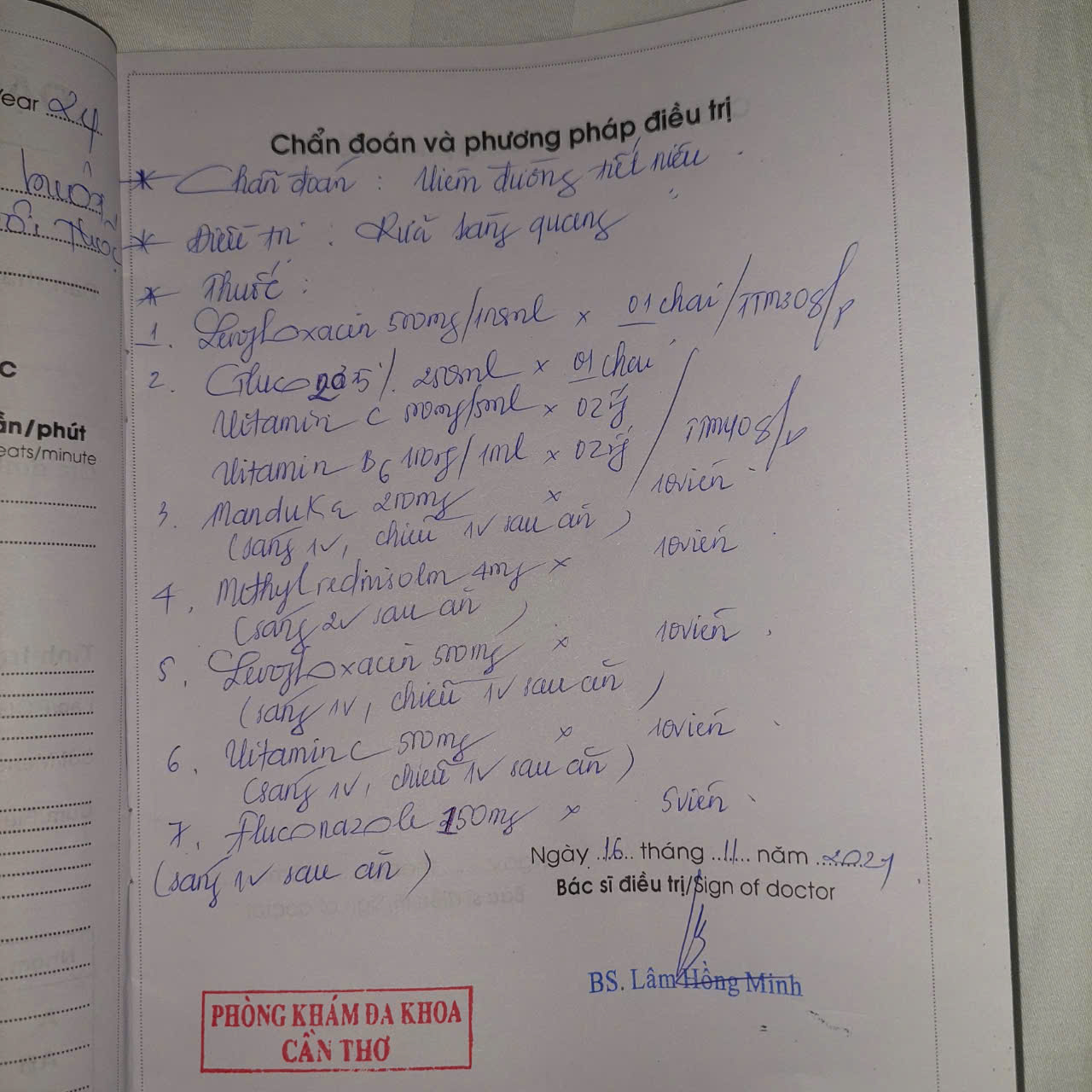Theo anh Năm, ngày hôm sau, anh đến thì bác sỹ lại đưa anh lên và bôi thuốc mỡ vào dương vật và chiếu đèn hồng ngoại, sau đó yêu cầu anh đóng thêm 1,5 triệu đồng. Sau khi điều trị xong, anh Năm xuống xin bác sỹ số khám và phiếu xác định chữa bệnh để xin nghỉ rồi mang về xin nghỉ và ứng lương thì bác sỹ mới cho quyển số khám bệnh và bác sỹ có tên Lâm Hồng Minh ký điều trị.