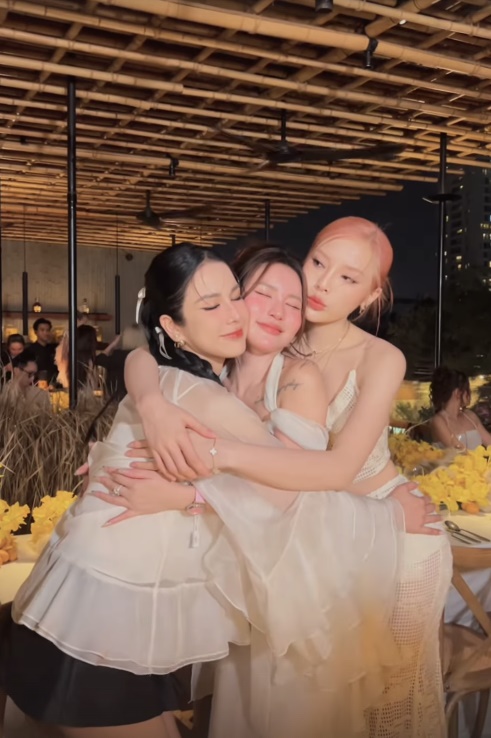 Đáng chú ý, phú bà Lucie còn gây bàn tán xôn xao với nghi vấn đang mang lần thứ 3. Nguyên nhân đến từ hành động “nhả vía” của Lucie Nguyễn cho Viên Vibi trong bữa tiệc. Cụ thể, Viên Vibi đã pose dáng chụp ảnh sờ và ôm bụng Lucie Nguyễn để “xin vía” có em bé. Sau đó Lucie cũng trao sash cho Viên Vibi với dòng chữ “Nhả vía có bầu”.