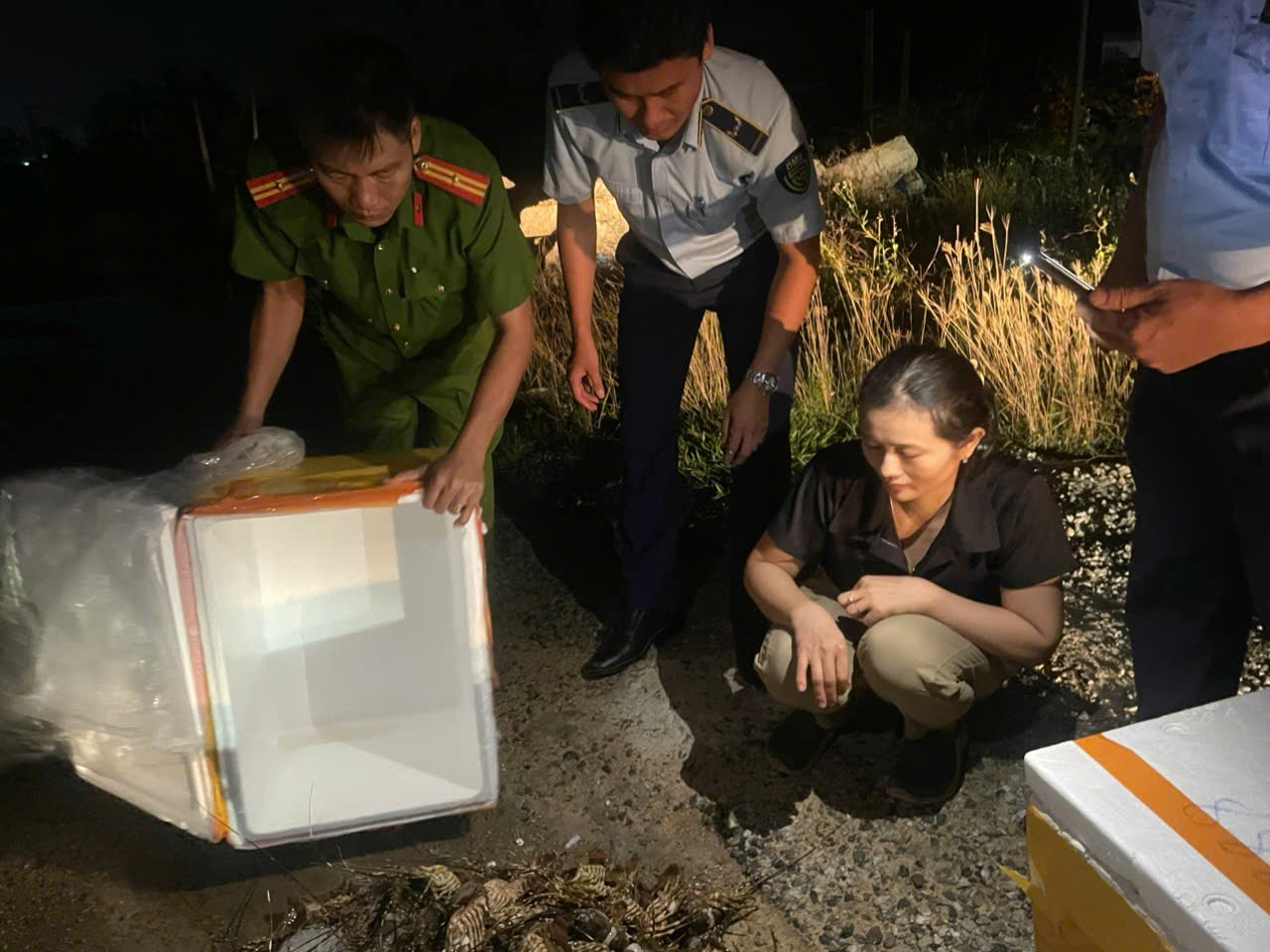Tại thời điểm kiểm tra, lực lượng chức năng phát hiện bà X. đang trực tiếp dùng bơm tiêm để đưa tạp chất (thạch rau câu) vào 45kg tôm hùm đã chết nhằm mục đích tăng trọng lượng và giữ hình thức tôm tươi để đánh lừa người mua. Bà X. khai nhận toàn bộ hành vi, cho biết đã thu mua tôm chết từ trước và tự thực hiện việc bơm tạp chất để tiêu thụ ra thị trường.