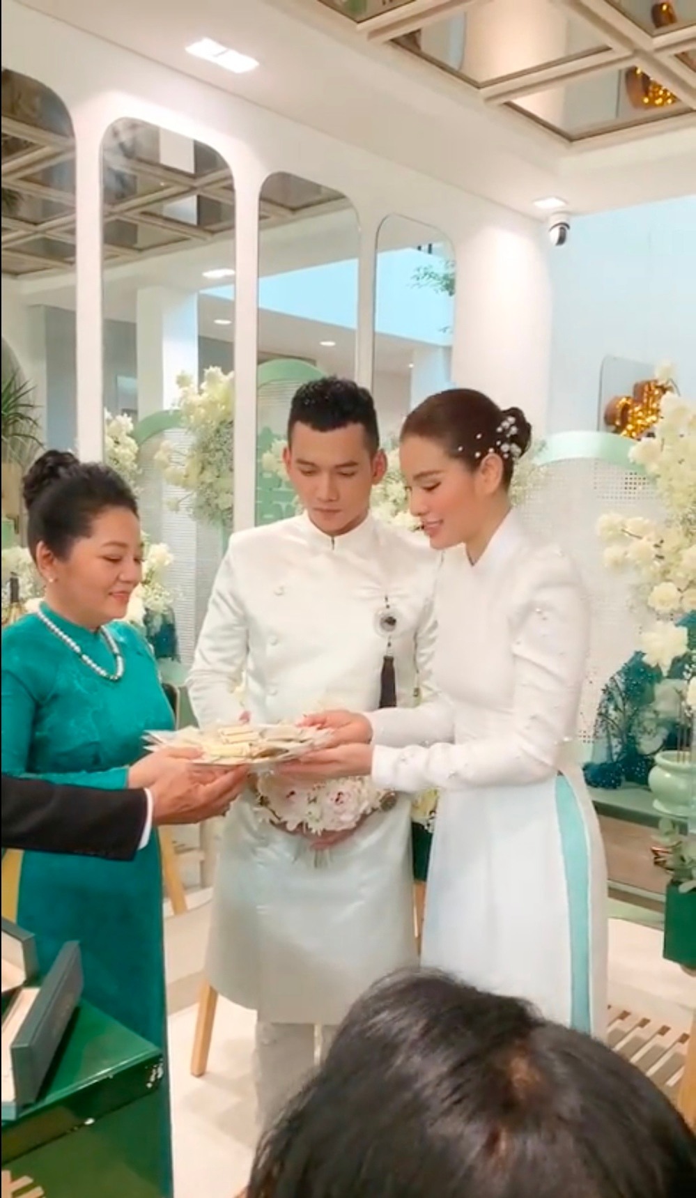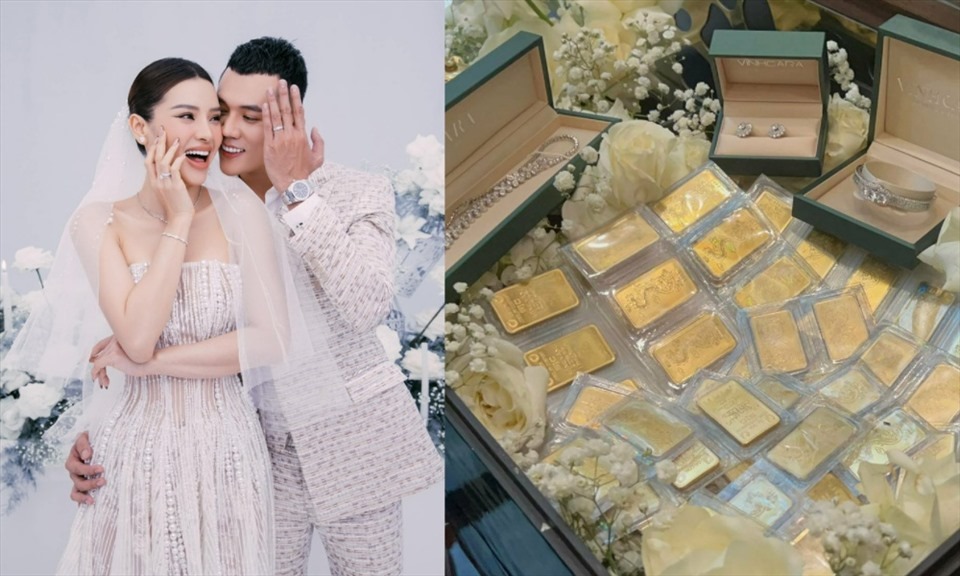 Cặp đôi từng khiến người hâm mộ sốt sình sịch với đám cưới khủng. Người đẹp từng công khai nhận được trong ngày trọng đại lên đến 88 cây vàng và bộ trang sức kim cương trị giá 2 tỷ đồng.