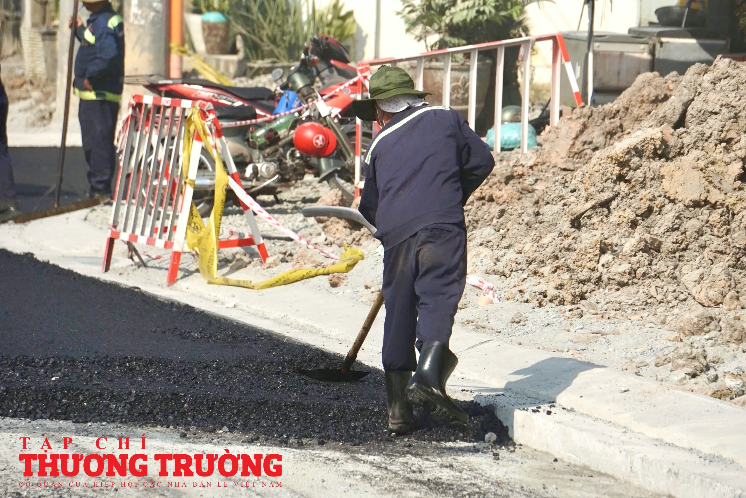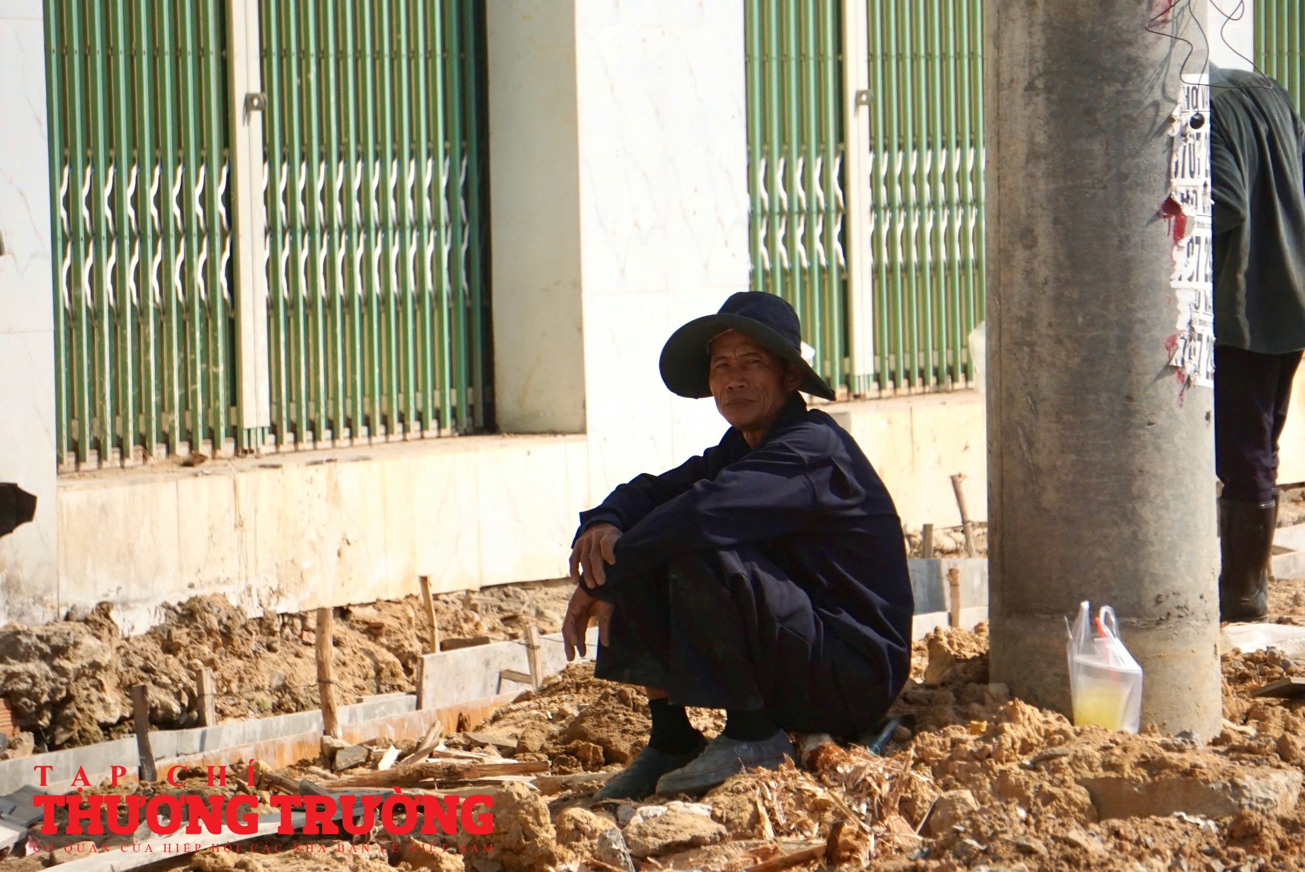 Công nhân tập trung thi công xuyên trưa để kịp tiến độ cam kết.