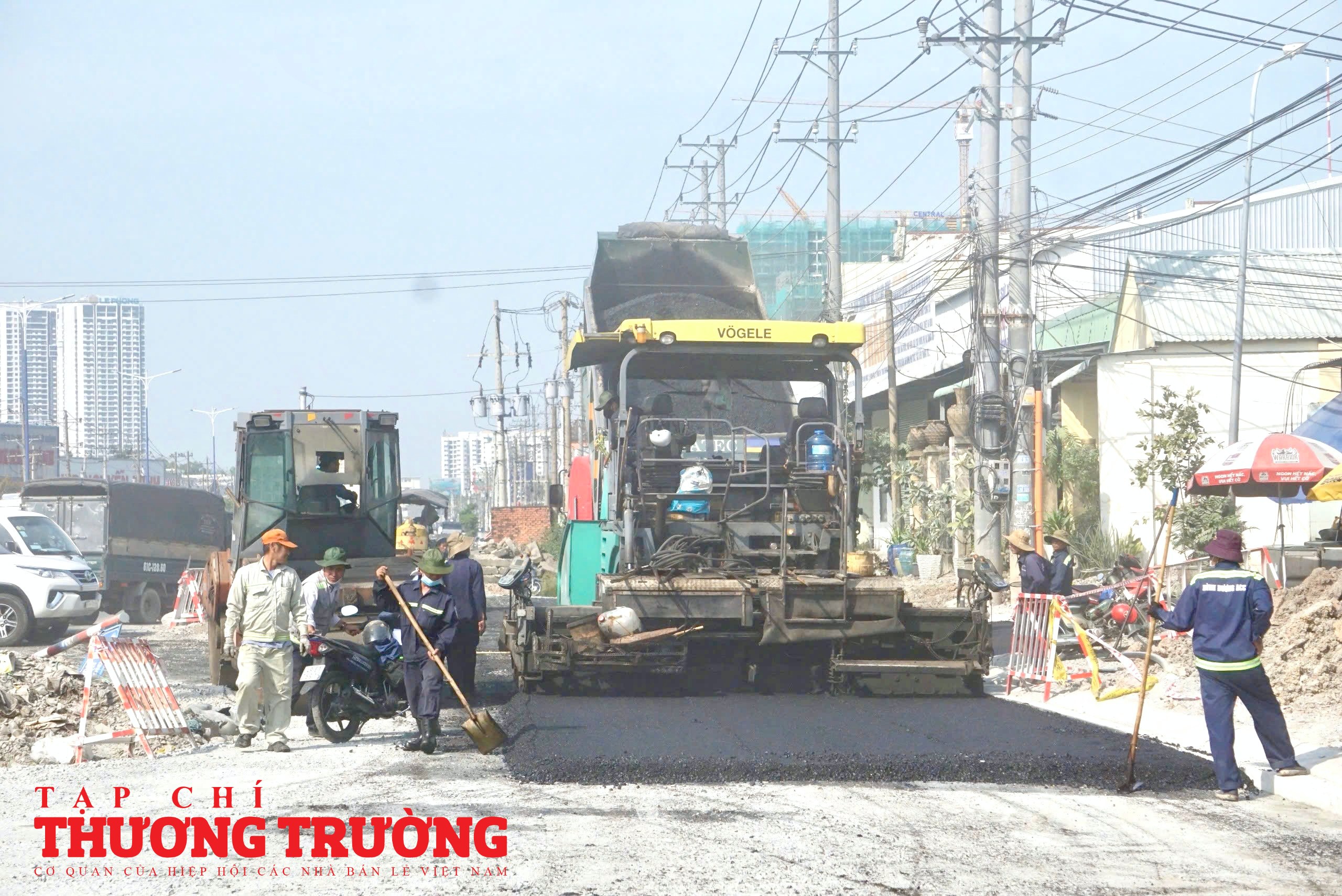 Trải nhựa mặt đường đoạn qua khu vực phường Lái Thiêu cũ.