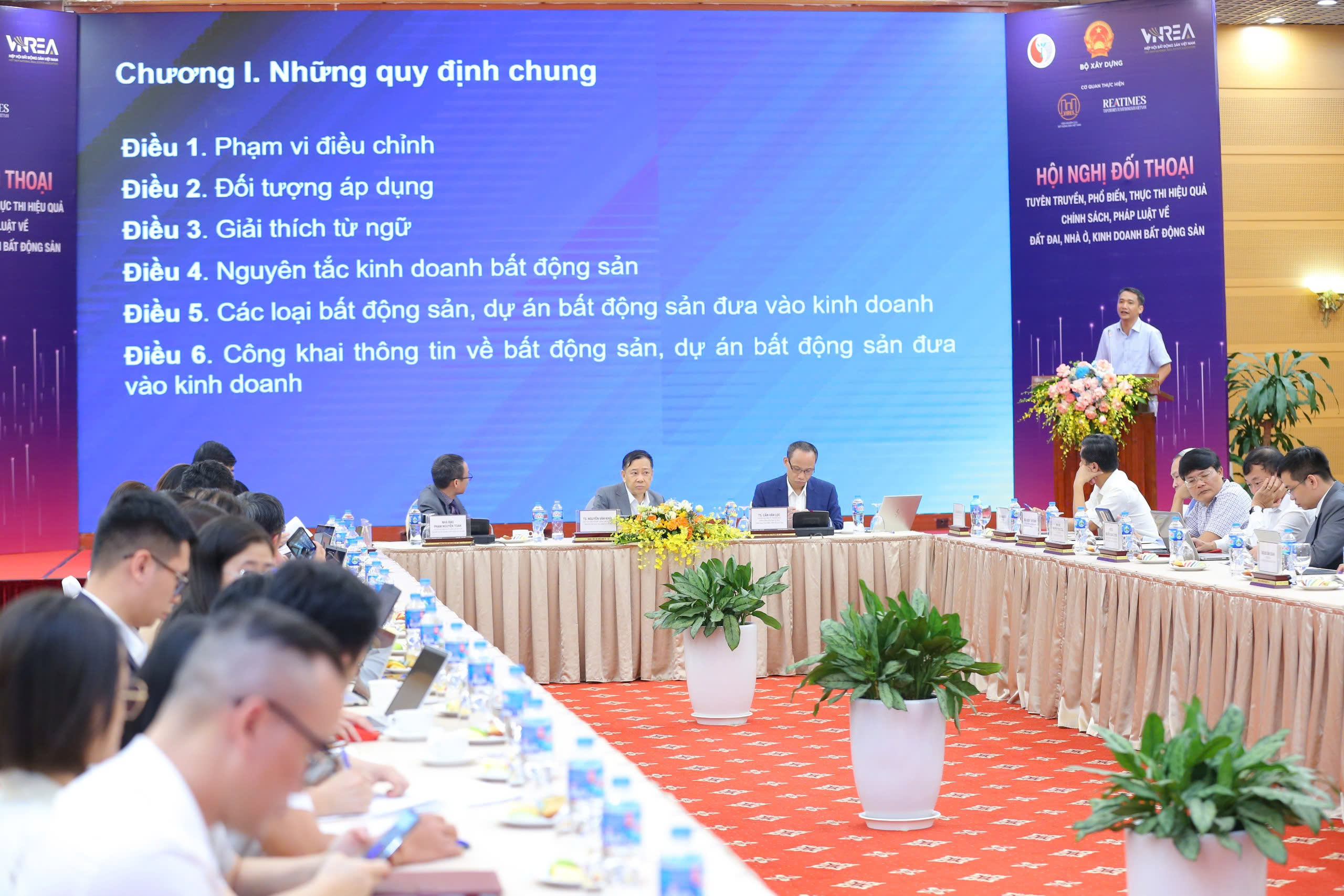 Hội nghị Đối thoại giữa cơ quan soạn thảo luật, các chuyên gia, doanh nghiệp, báo chí về cách hiểu và áp dụng Luật Đất đai, Luật Nhà ở, Luật Kinh doanh bất động sản và các văn bản hướng dẫn thi hành vào thực tiễn hoạt động của doanh nghiệp bất động sản.