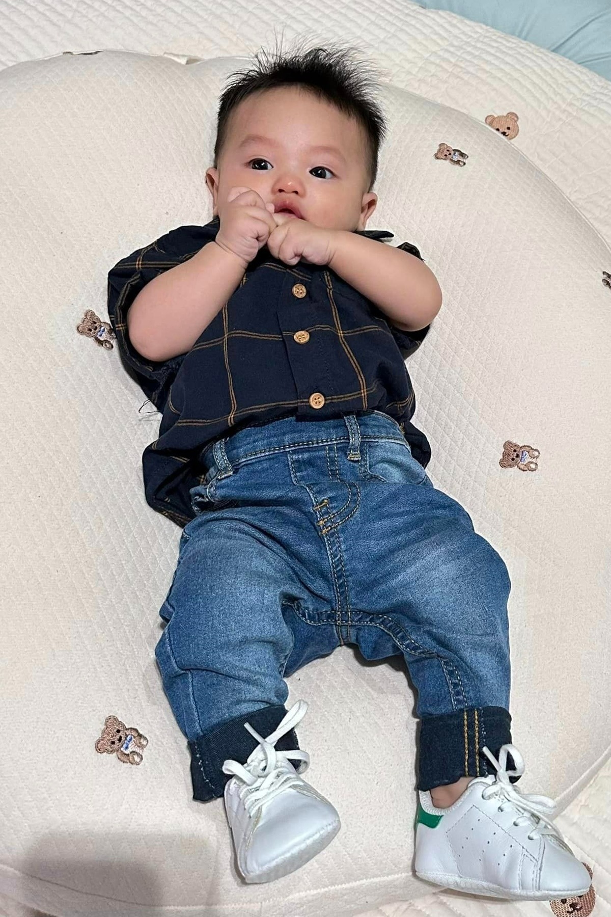 Đàm Thu Trang - Cường Đôla cho con trai ăn vận chỉn chu, ra dáng hot boy nhí. Cậu nhóc nhiều lần được mẹ chuẩn bị cho những set đồ phong cách như người lớn.