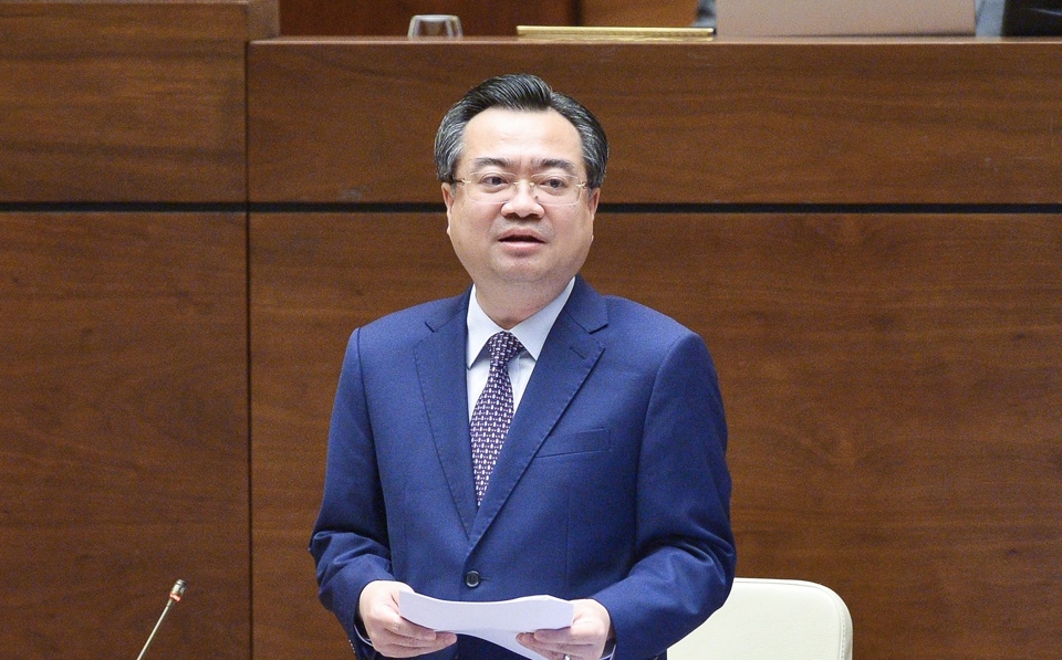 Bộ trưởng Bộ Xây dựng Nguyễn Thanh Nghị phát biểu giải trình tại phiên họp. (Ảnh: Quochoi.vn).