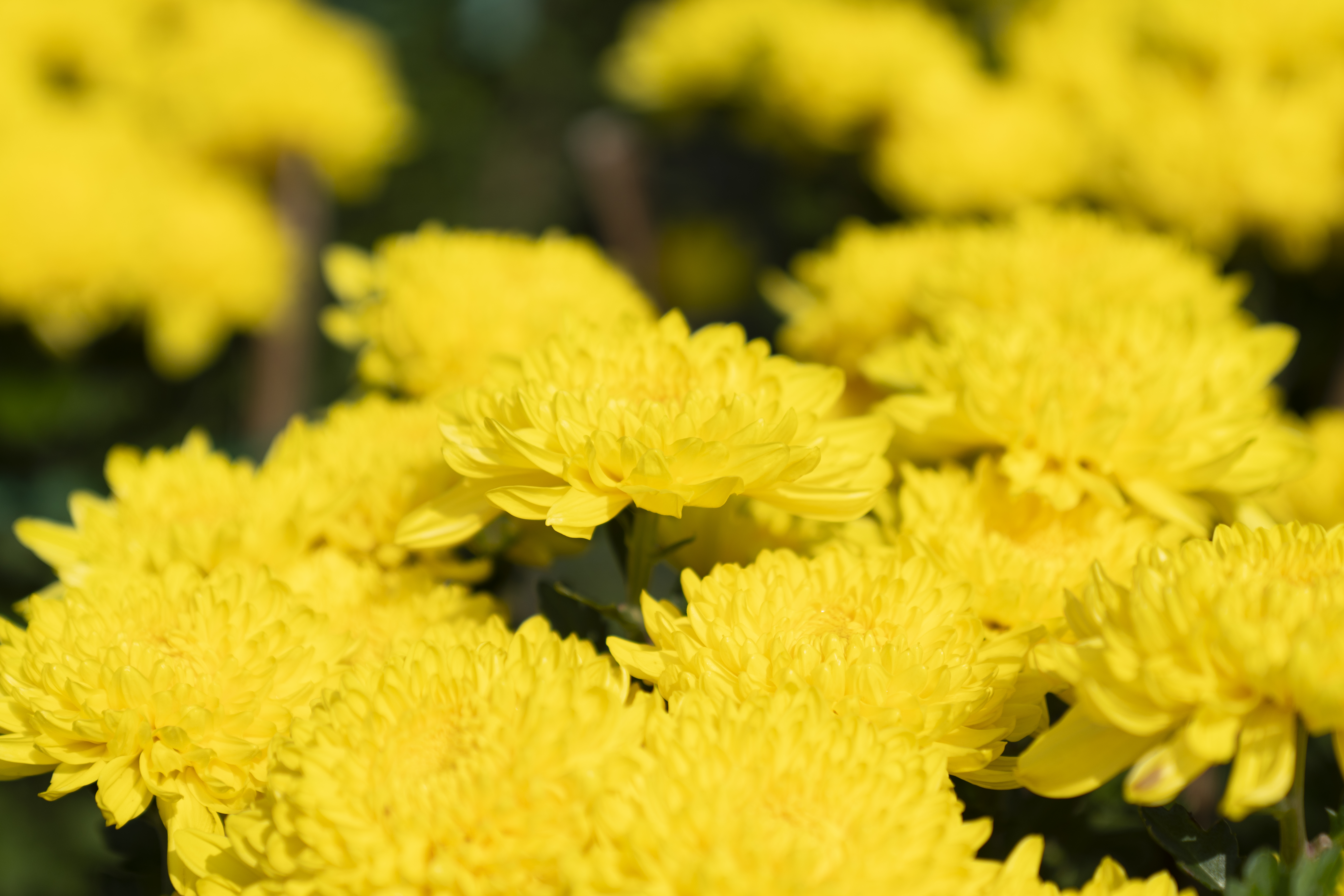 Cận cảnh những chậu cúc vàng nở đều, bông to, sắc hoa tươi sáng – dòng hoa chủ lực được ưa chuộng dịp Tết Nguyên đán.