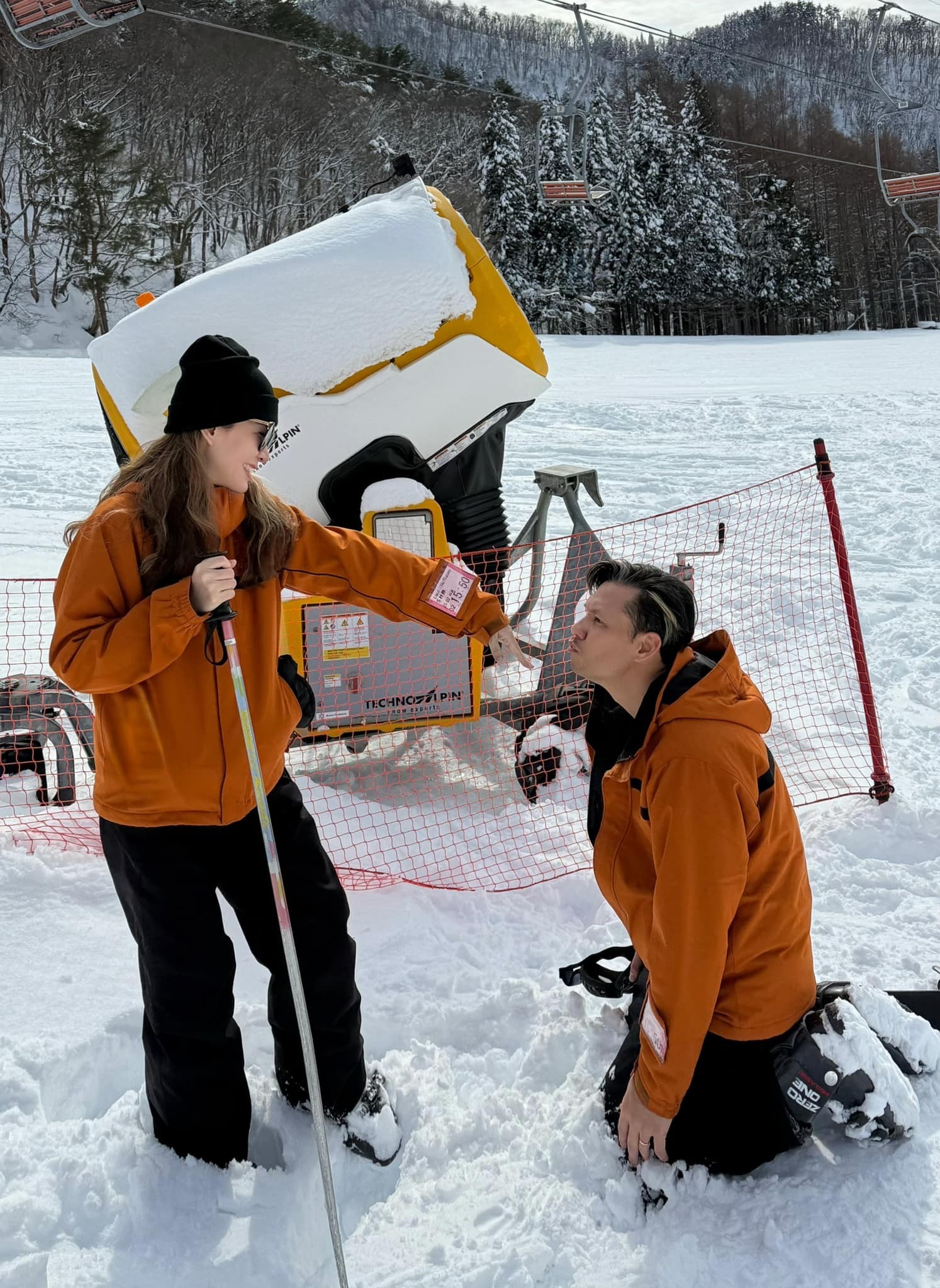 "Trượt tuyết với mình khó kinh khủng khiếp! Dù tập gym, yoga đều đặn, nhưng đứng trên tuyết không giống bất cứ thứ gì mình từng trải qua. Nó trơn một cách vô lý. Đầu gối yếu do giãn dây chằng khiến việc giữ thăng bằng chẳng khác gì đi giày cao gót trên băng", người đẹp chia sẻ.