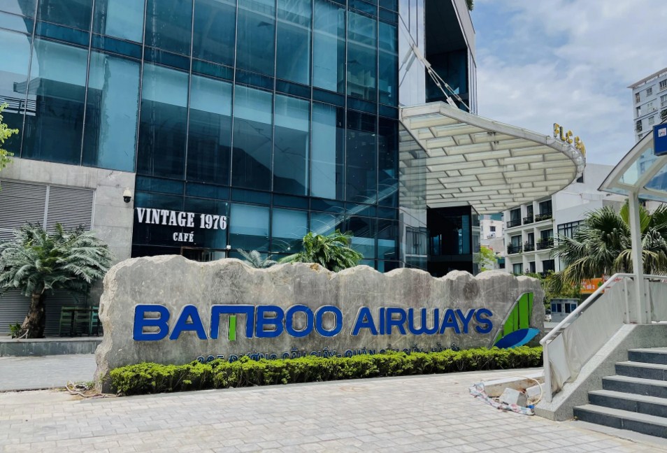 Logo "Bamboo Airways" trước tòa nhà văn phòng tại số 265 đường Cầu Giấy