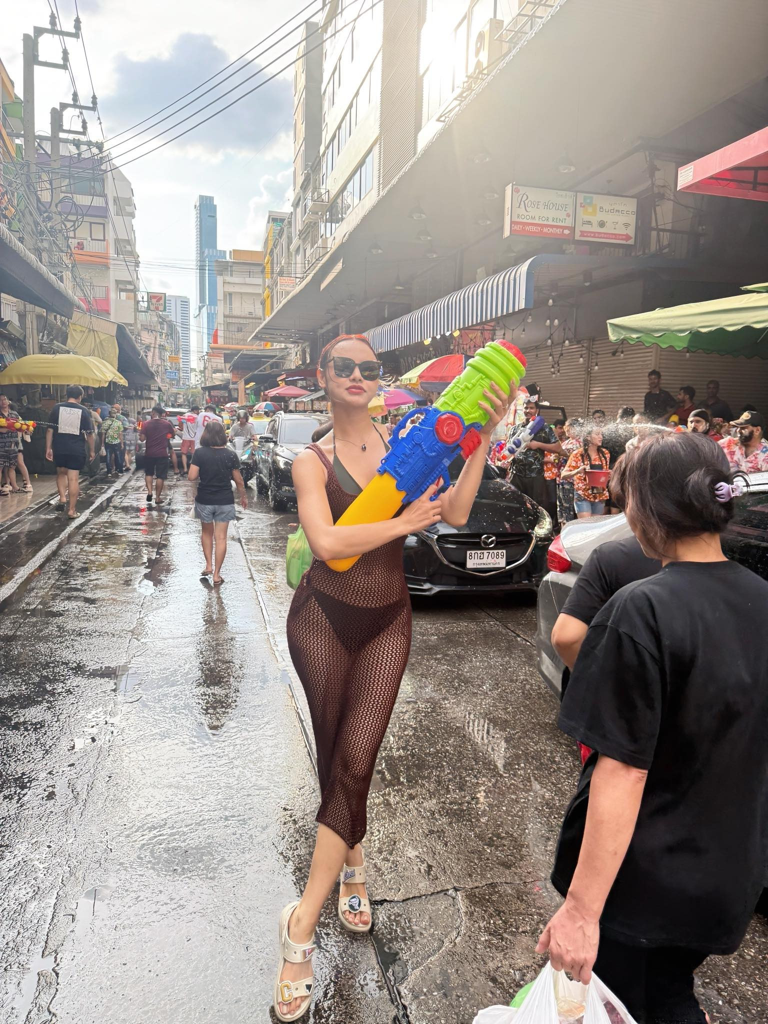 Sau Mai Ngô đến lượt em gái Công Vinh gây sốt với màn lên đồ táo bạo tham gia lễ hội té nước Songkran ở Thái Lan.