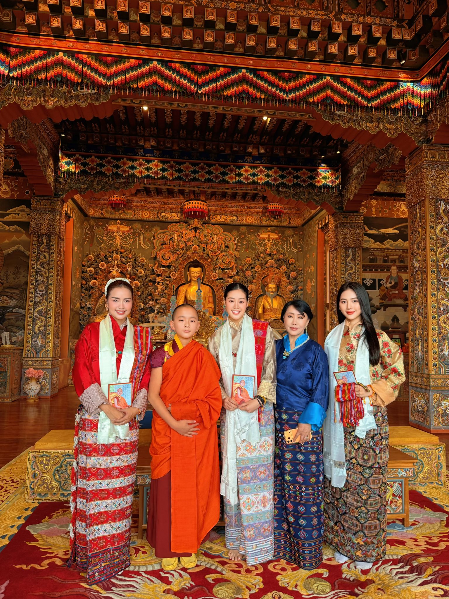 Hoa hậu Bùi Quỳnh Hoa cùng vợ chồng Khánh Vân và Ngọc Châu vinh dự được diện kiến Hoàng Thái Hậu, Công Chúa và Hoàng tôn ở Bhutan.