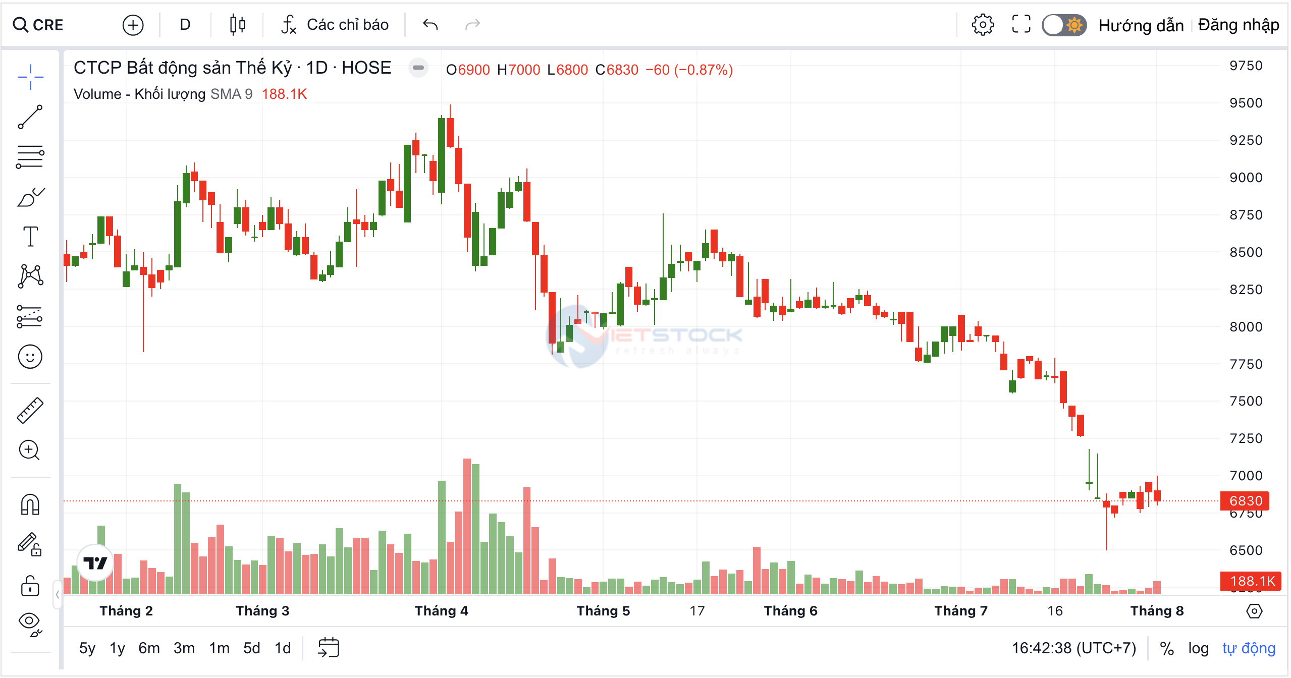 Diễn biến cổ phiếu CRE trong 7 tháng đầu năm. (Biểu đồ: vietstock)