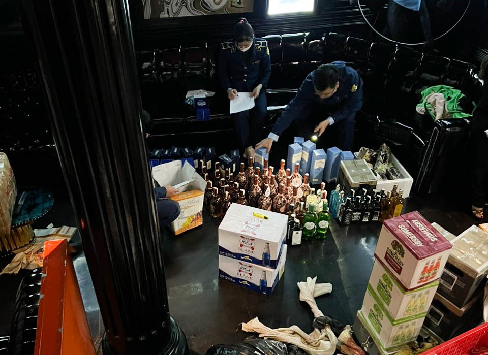 Ngoài ra, tổ công tác cũng phát hiện 94 chai rượu các loại (44 chai có tem và 50 chai không tem), như Royal Salute 21, Chivas 12, Chivas 18, Ballantines, The Glenlivet, Bombay Saphire, Cuvee Rose Champagne... không có hóa đơn, chứng từ chứng minh nguồn gốc xuất xứ.