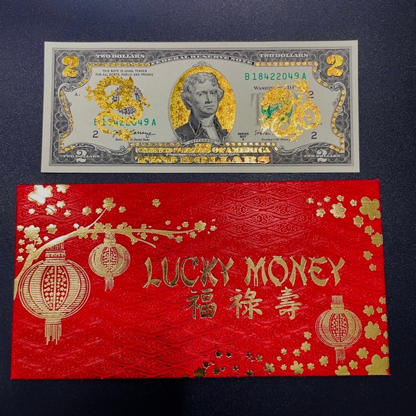 Hiện trên thị trường cho thấy phổ biến nhất là tờ 2 USD hình con Rồng 2024 được phát hành tại Mỹ dành cho các thị trường châu Á, giá dao động từ 100.000 - 150.000 đồng/tờ. Mặt trước của tờ 2 USD giống tờ 2 USD thông dụng, mặt sau là hình ảnh Tổng thống Thomas Jefferson ở giữa, bên phải và bên trái là hình ảnh 2 con Rồng vàng. Theo quan niệm người phương Đông, số 2 là số may mắn, hạnh phúc do vậy tờ 2 USD cũng có ý nghĩa tương tự. Chính vì thế đầu năm mới, tờ USD mạ vàng in con Rồng được nhiều người săn lùng.