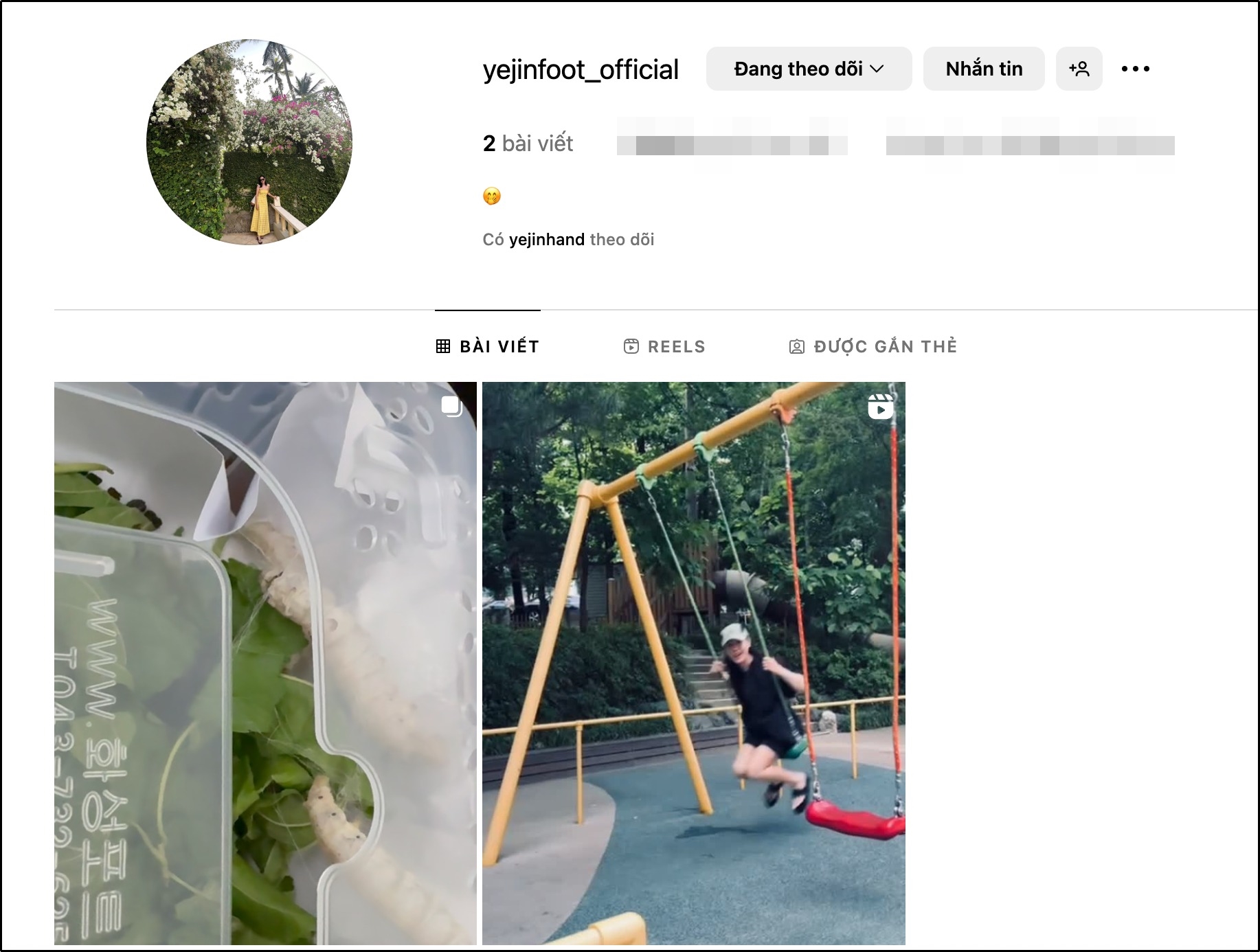 Chiều 17/6, Son Ye Jin bất ngờ công khai tài khoản Instagram phụ mang tên yejinfoot_offical. Đây là tài khoản riêng để nữ diễn viên chia sẻ những hình ảnh cuộc sống thường ngày, không liên quan đến công việc.