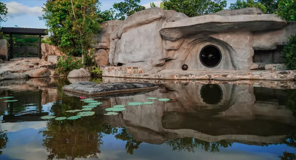 Bên trong căn nhà được chia thành các phòng với các tên gọi như Sky, Wind, Air…, thiết kế và trang trí hoàn toàn bằng chất liệu gỗ và đá, rèm treo và khăn, chăn, gối đều là vải linen (vải được làm từ sợi cây lanh). Những vật dụng trong nhà mộc mạc, từ đá, gốm, mây, tre…