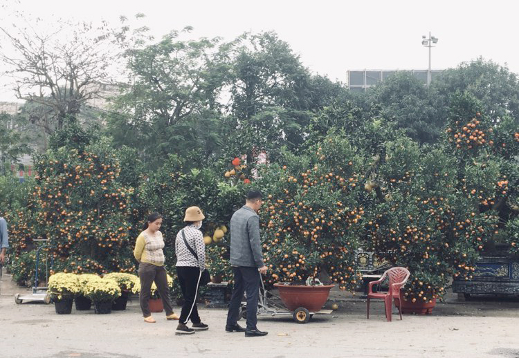 Bên cạnh sức mua các mặt hàng thiết yếu tăng, thị trường hoa, cây cảnh cũng đang rất nhộn nhịp, người bán cũng bày bán đủ loại hoa mai, hoa đào, quất cảnh, bưởi cam cảnh… với nhiều loại to, nhỏ khác nhau đã thu hút đông đảo người dân tìm về.