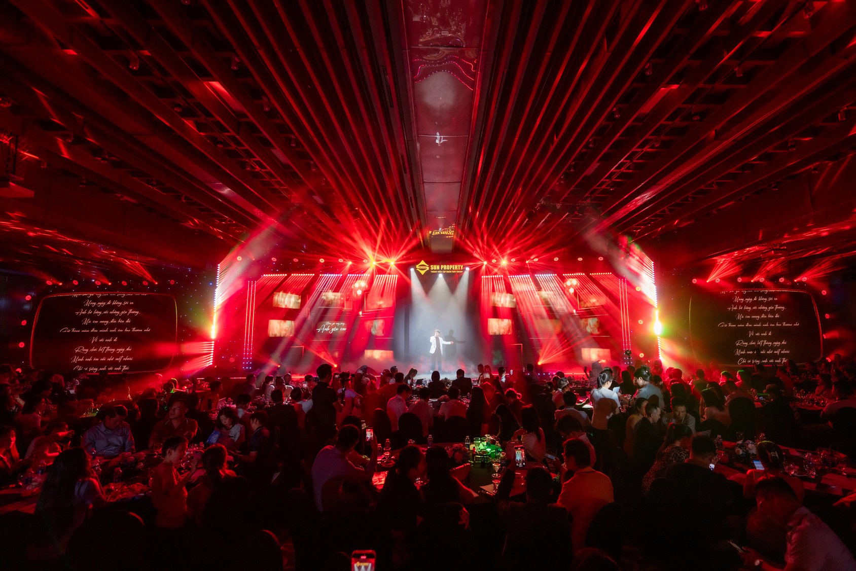 Ngay sau đó, khi âm hưởng hào hùng của tiếng trống hội vang khắp hội trường, những vầng sáng Ánh Dương dần lan tỏa, mở ra không gian rực rỡ của màn trình diễn nghệ thuật được dàn dựng công phu. Cao trào chương trình là khoảnh khắc hai tòa tháp Cora Tower vươn cao, kiêu hãnh giữa trời mây Hòa Xuân, xuất hiện trên màn hình lớn.