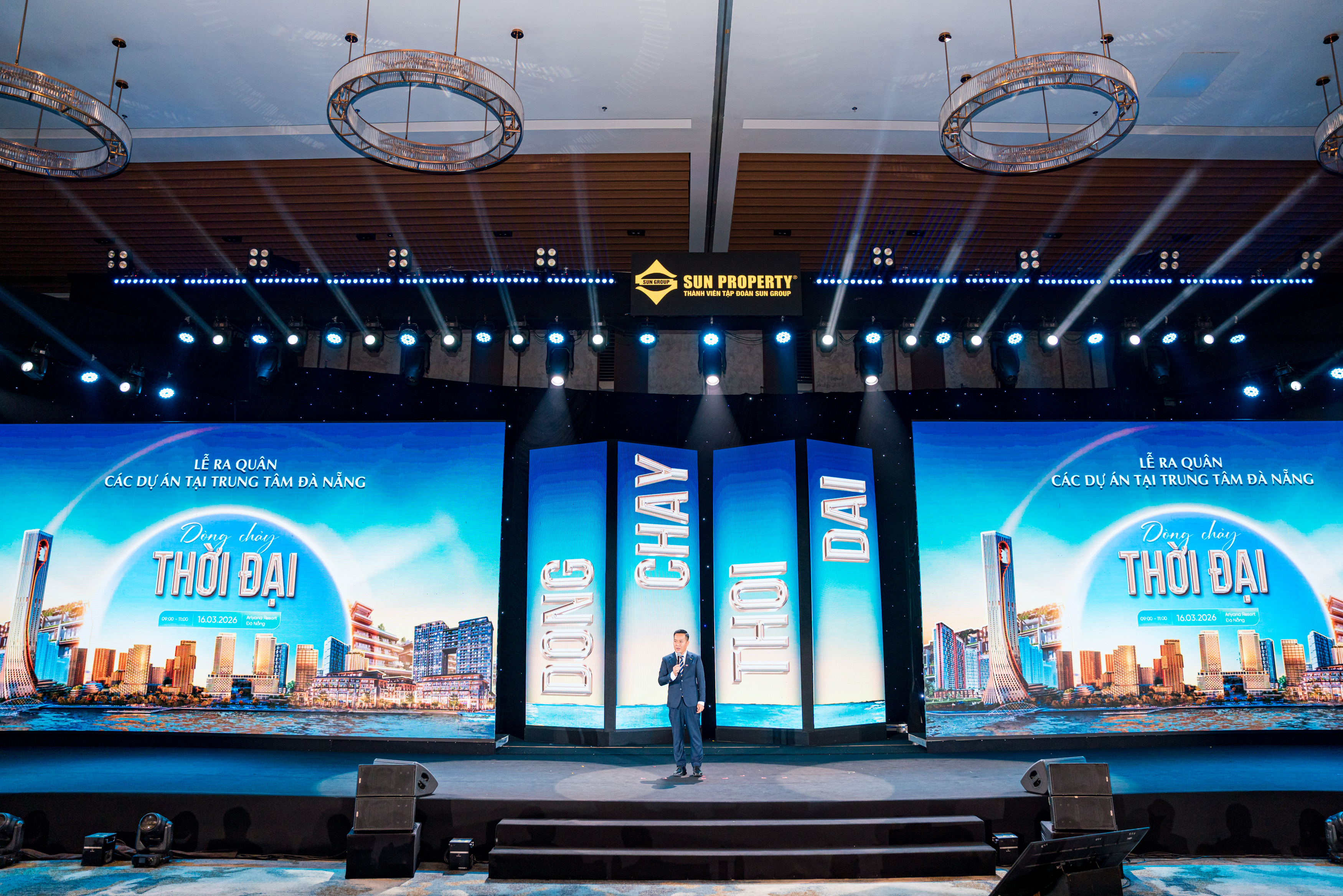 Sáng 16/03/2026, tại Ariyana Resort (Đà Nẵng), hơn 1.800 chuyên viên kinh doanh đã cùng tạo nên bầu không khí bùng nổ tại Lễ ra quân các dự án trung tâm Đà Nẵng. Sự kiện do Sun Property tổ chức mang chủ đề “Dòng chảy thời đại”, chính thức khơi mở chiến dịch chinh phục thị trường bất động sản thành phố sông Hàn năm 2026.