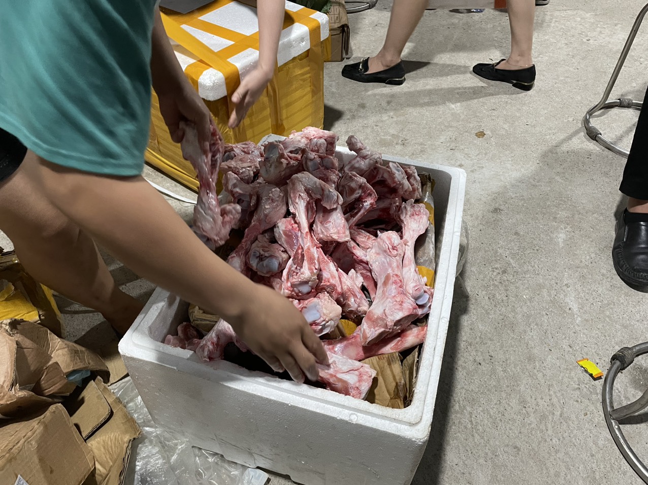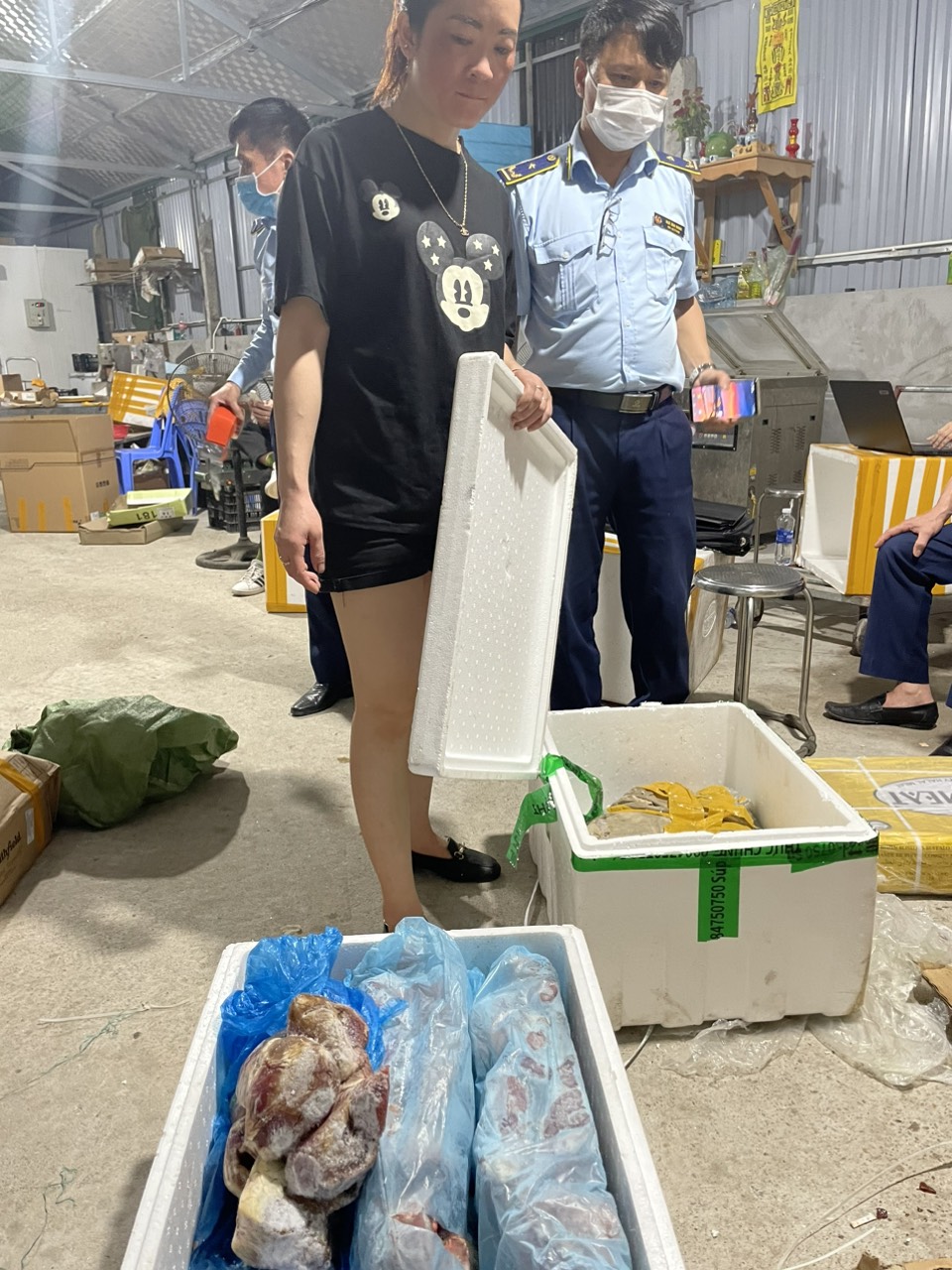Tại thời điểm kiểm tra, Đoàn kiểm tra phát hiện tại hộ kinh doanh có: 380kg thịt trâu đông lạnh có nhãn chữ nước ngoài, đã quá hạn sử dụng ghi trên nhãn hàng hóa và 374kg thịt, sương động vật đông lạnh là thực phẩm không rõ nguồn gốc xuất xứ. Ước tính giá trị lô hàng lên đến hàng chục triệu đồng.