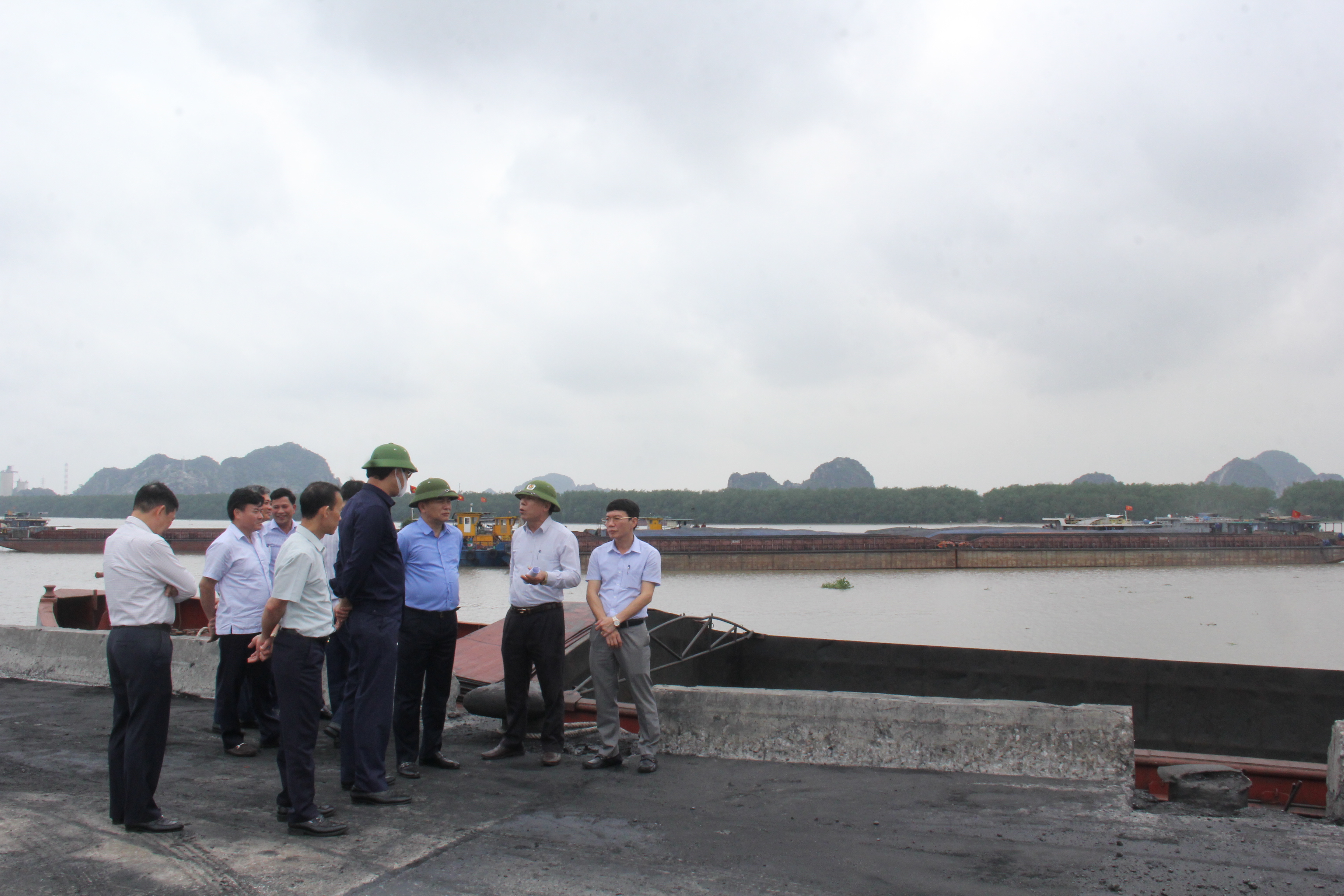Phó Tổng Giám đốc Tập đoàn Vũ Anh Tuấn và đoàn công tác kiểm tra tại cảng Điền Công (ảnh TKV).