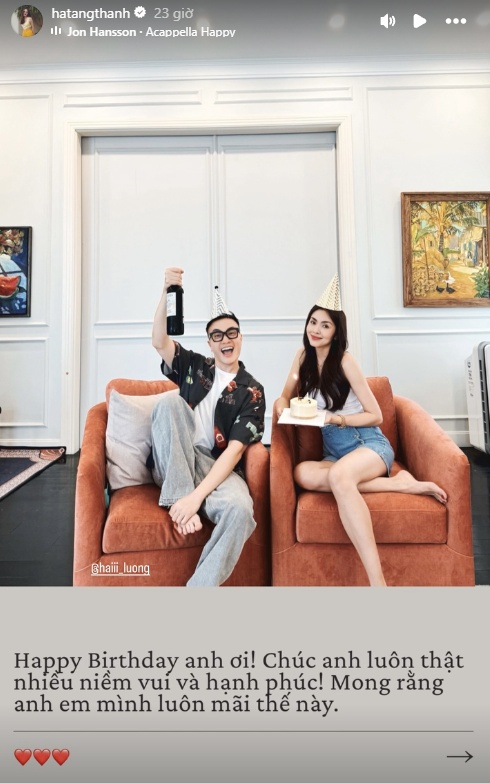 Mới đây, trên trang cá nhân, Tăng Thanh Hà đăng ảnh chúc mừng sinh nhật Lương Mạnh Hải.