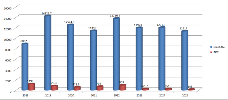 Lũy kế cả năm 2025, Tập đoàn Sao Mai mang về 11.340 tỉ đồng doanh thu và 145,9 tỉ đồng lợi nhuận sau thuế; lần lượt giảm 5,7% và 41,8% so với cùng kỳ năm 2024.