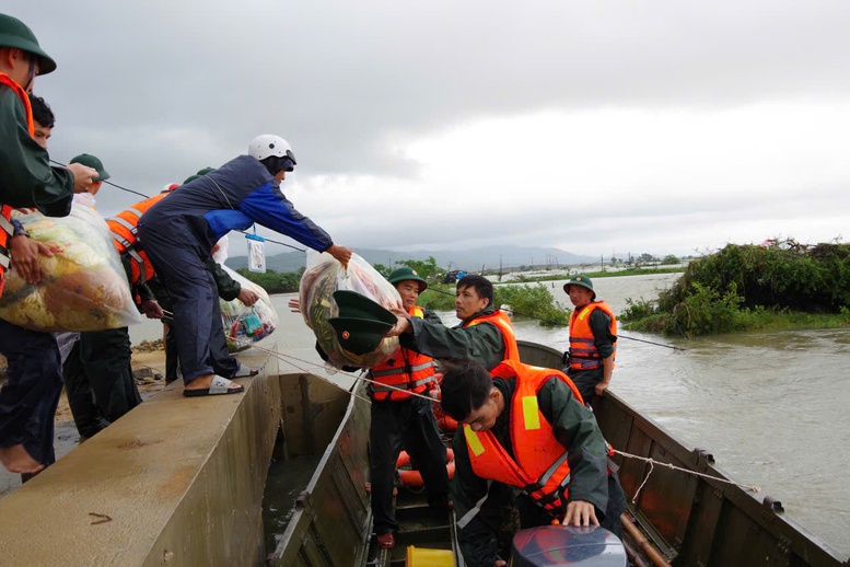 Bộ đội chuyển hàng cứu trợ cho người dân