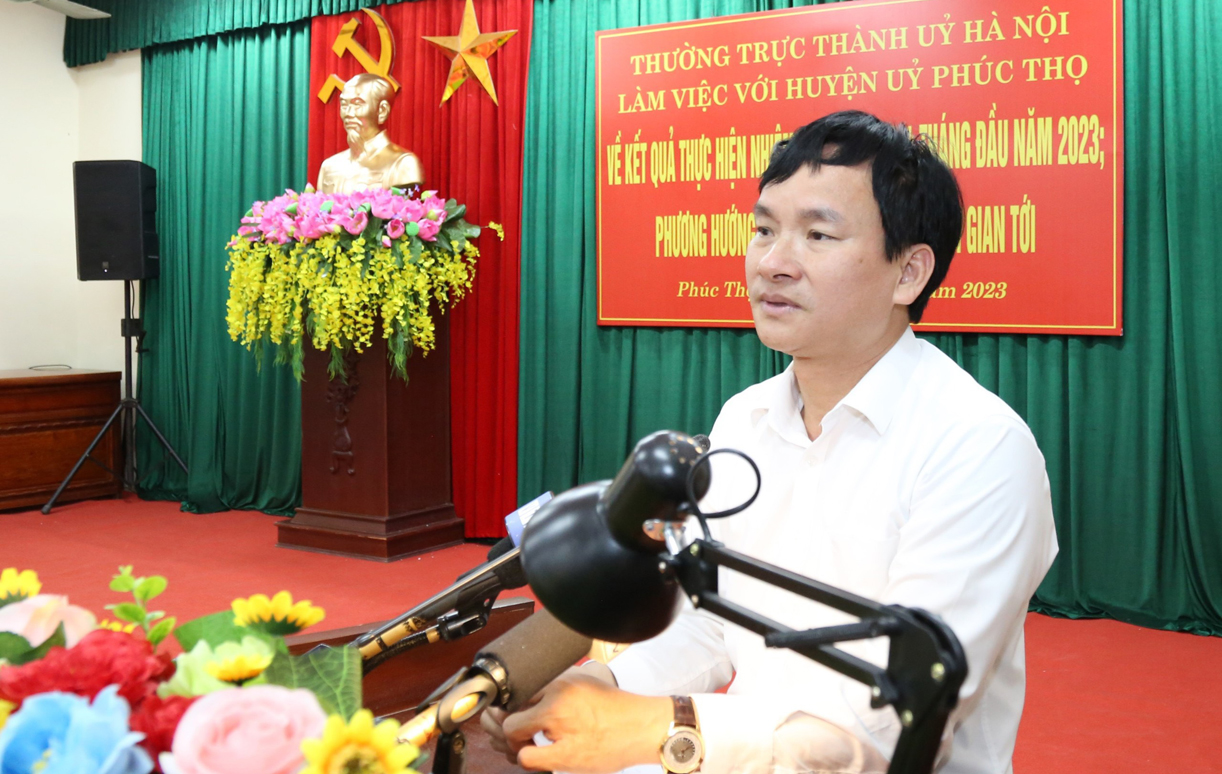 Thay mặt Huyện ủy Phúc Thọ, Bí thư Huyện ủy Nguyễn Doãn Hoàn đã tiếp thu ý kiến chỉ đạo của Thường trực Thành ủy, khẳng định quyết tâm xây dựng huyện ngày càng phát triển.