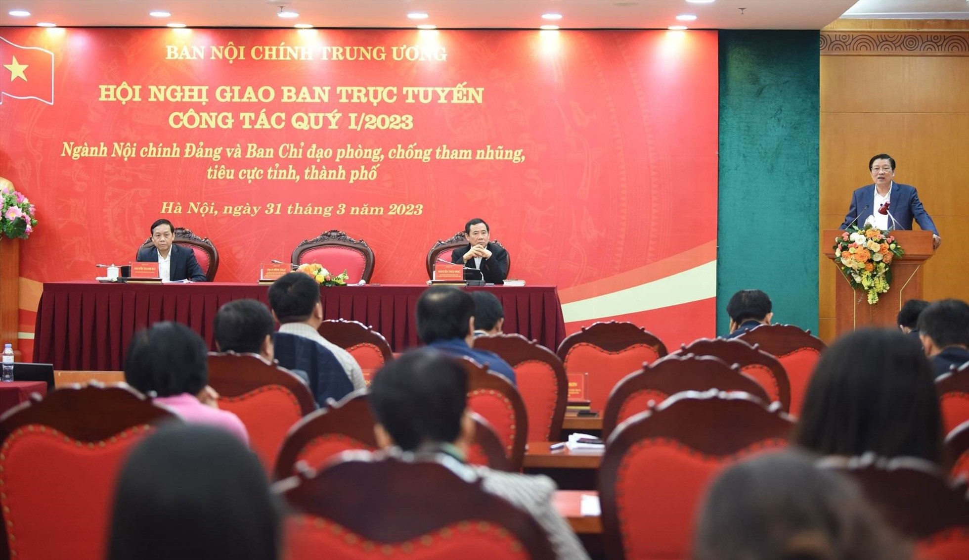 Hôm nay, ngày 31/3, Ban Nội chính Trung ương tổ chức Hội nghị giao ban trực tuyến công tác quý I/2023 ngành Nội chính Đảng và Ban Chỉ đạo phòng, chống tham nhũng, tiêu cực các tỉnh, thành phố. Ủy viên Bộ Chính trị, Bí thư Trung ương Đảng, Trưởng ban Nội chính Trung ương Phan Đình Trạc chủ trì Hội nghị.
