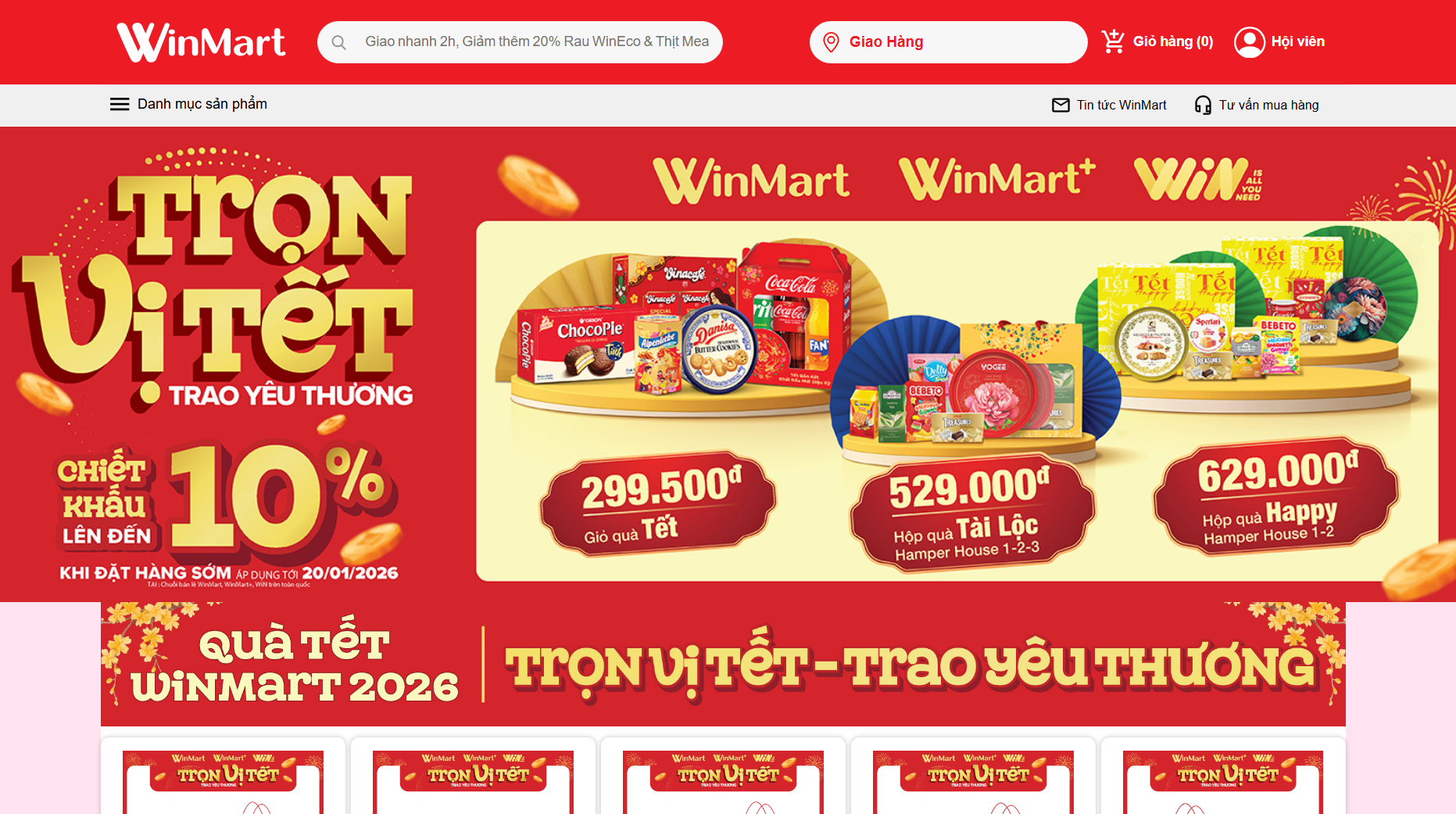 Nhanh chóng thích ứng sự thay đổi này, các chuỗi siêu thị như Co.opmart và WinMart đã bắt đầu triển khai đặt giỏ quà Tết online, có mã QR để truy xuất nguồn gốc sản phẩm nhằm đáp ứng cho nhu cầu kiểm soát chất lượng. Một số siêu thị còn mở riêng khu vực “chợ Tết online” trên website và app, cho phép người dùng tự lựa chọn món hàng rồi thanh toán chỉ với vài thao tác.