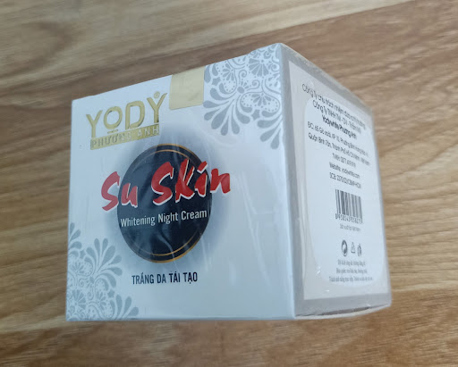 Sản phẩm Su Skin Whitening night cream trắng da tái tạo nhãn hàng Yody Phương Anh, hộp 1 lọ 20g, số lô: KD4 F93, hạn sử dụng: 10/6/2027.