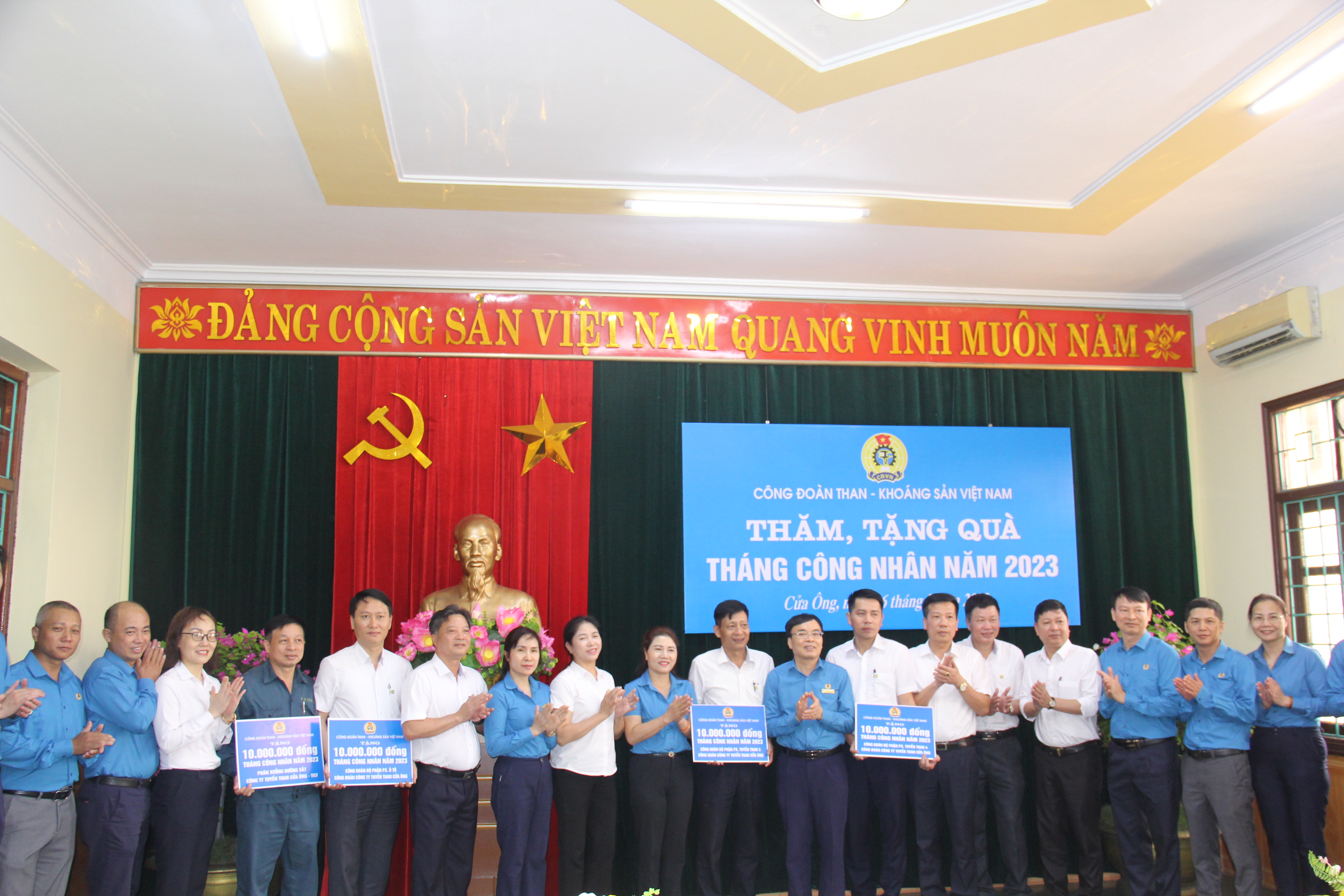 Tặng thưởng CNLĐ các phân xưởng và Công đoàn bộ phận xuất sắc của Tuyển than Cửa Ông (ảnh TKV).