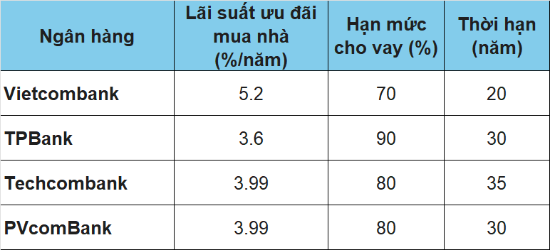 Bảng lãi suất vay ngân hàng tháng 1/2026.