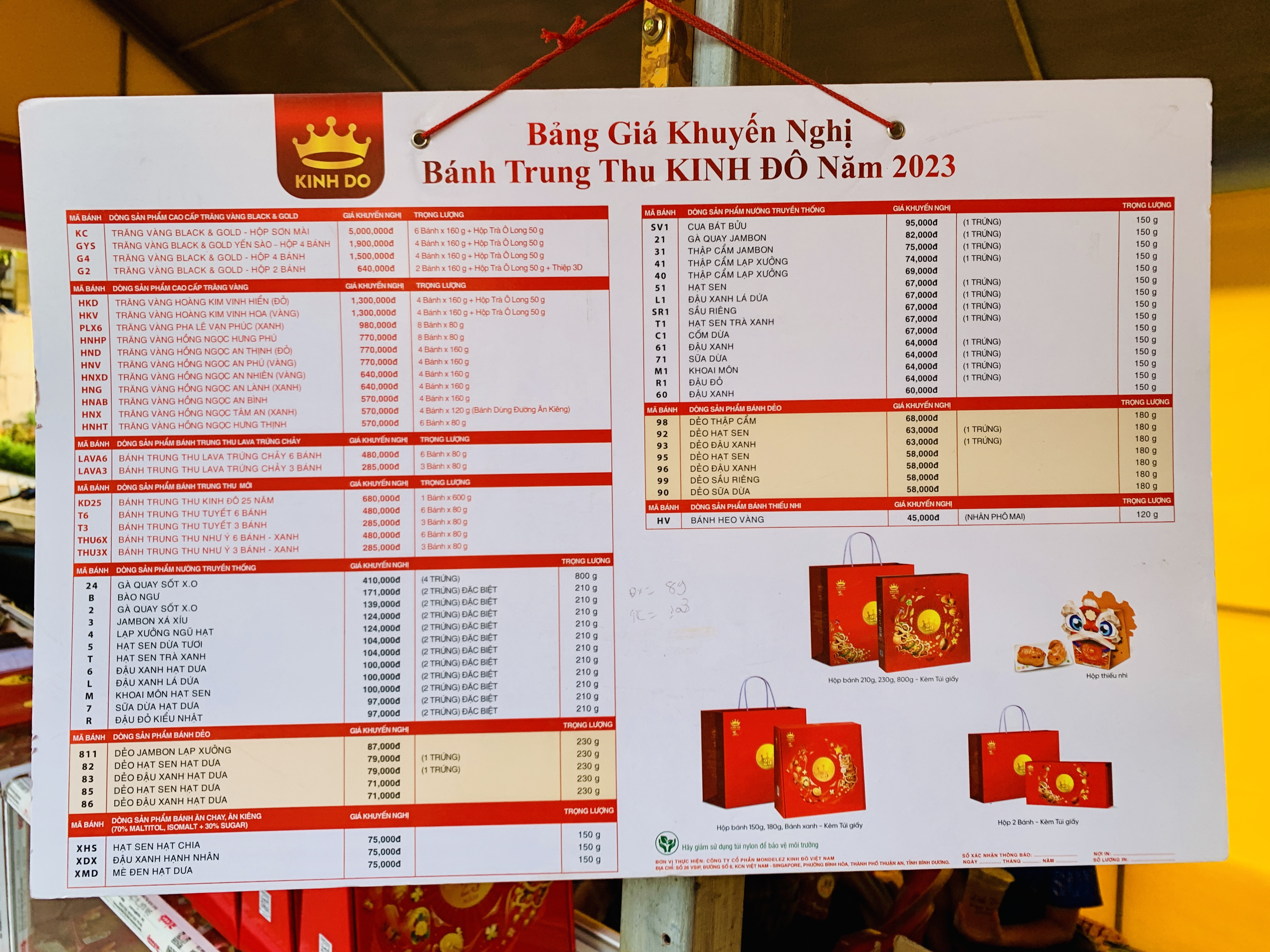 Bảng giá khuyến nghị bánh trung thu của thương hiệu Kinh Đô năm 2023.