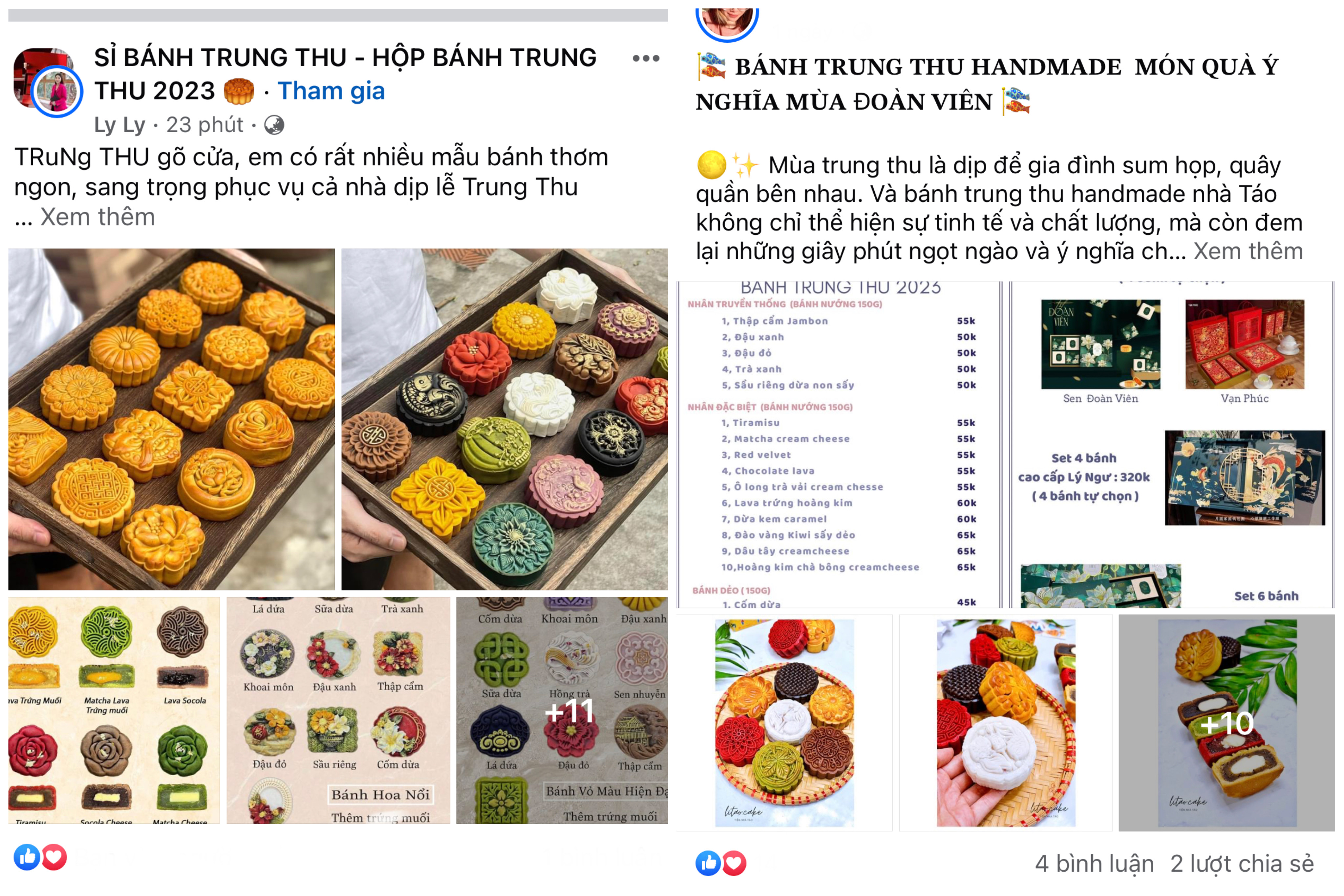 Bên cạnh đó, số lượng bánh tự làm (handmade) rao bán trên các mạng xã hội Facebook, Zalo, TikTok… cũng khá sôi động với các nguyên liệu tự nhiên, không chất bảo quản, thân thiện với sức khỏe… với giá cả và chất lượng khá phong phú.