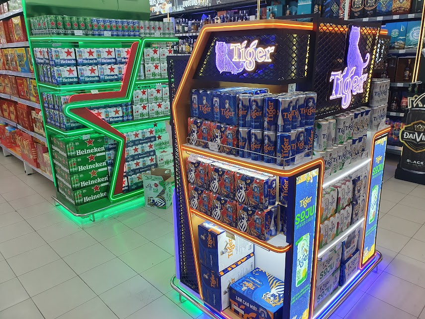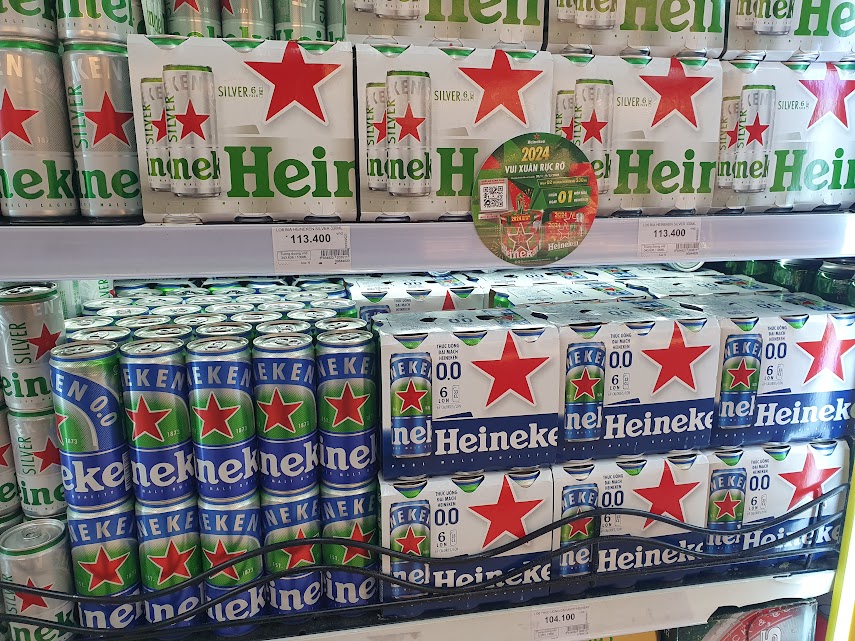Ngoài bia nội thị có các thương hiệu bia nhập khẩu như Heineken, Tiger, Carlsberg...  cũng đã lên kệ