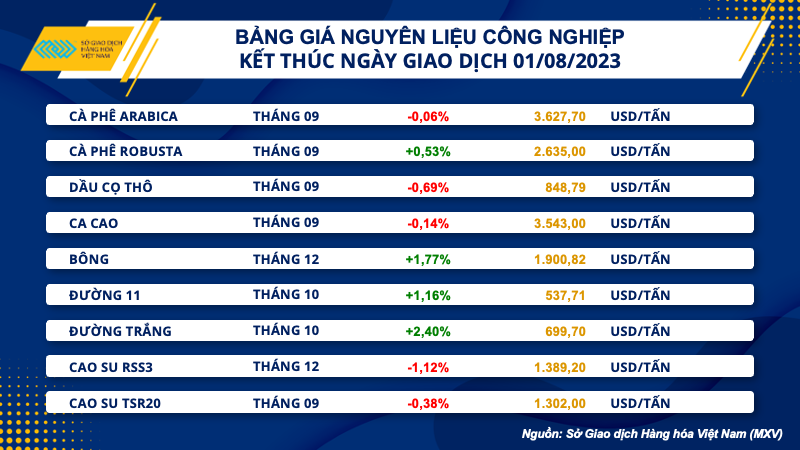 Số liệu từ Sở Giao dịch Hàng hóa Việt Nam (MXV) cho thấy, đóng cửa ngày giao dịch đầu tháng 8, nhóm kim loại đóng góp chủ yếu vào mức giảm của toàn thị trường với 8 trên tổng số 10 mặt hàng đồng loạt đóng cửa trong sắc đỏ.
