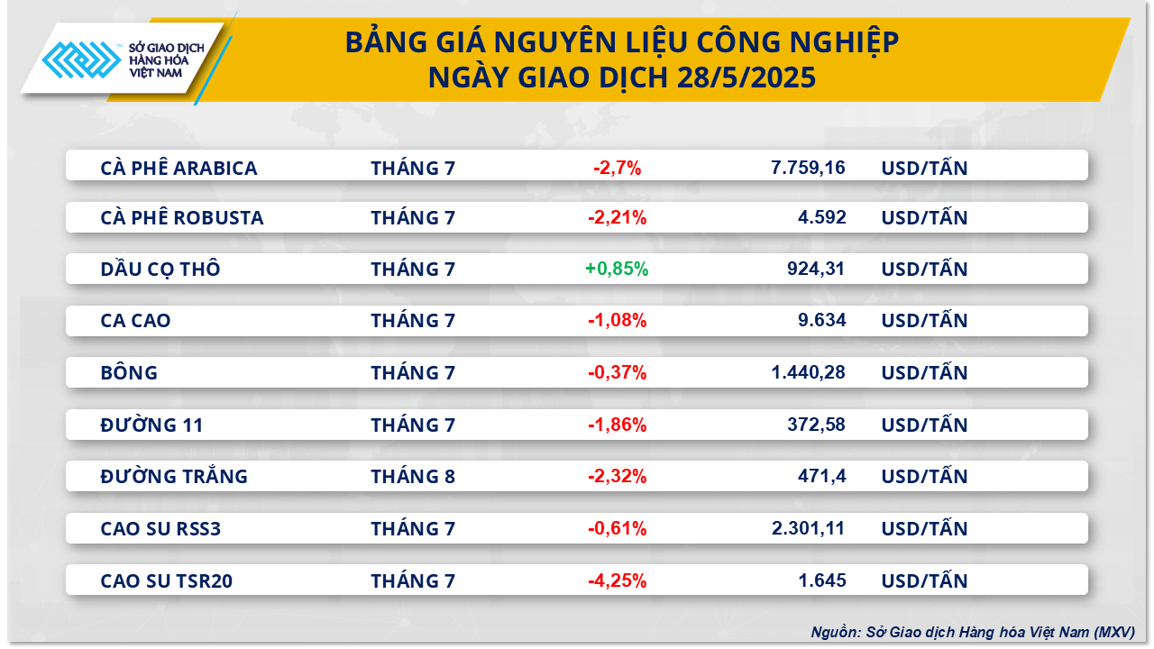 Theo Sở Giao dịch Hàng hóa Việt Nam (MXV), lực bán tiếp tục áp đảo trên thị trường hàng hóa nguyên liệu thế giới trong phiên giao dịch ngày hôm qua.
