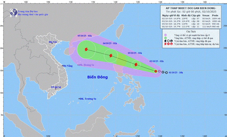 Theo dự báo, từ chiều đến tối 3-10, áp thấp nhiệt đới sẽ đi vào Biển Đông và trở thành cơn bão số 11.