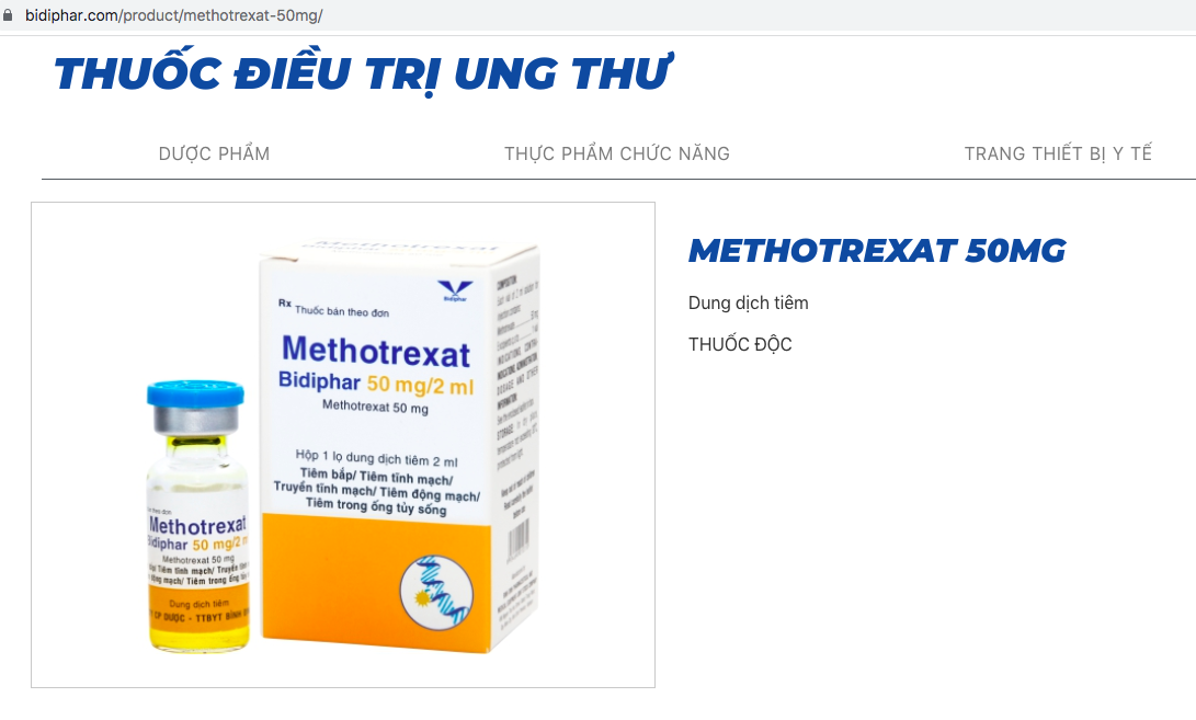 Thuốc Methotrexat Bidiphar 50mg/2ml được giới thiệu trên trang bidiphar.com