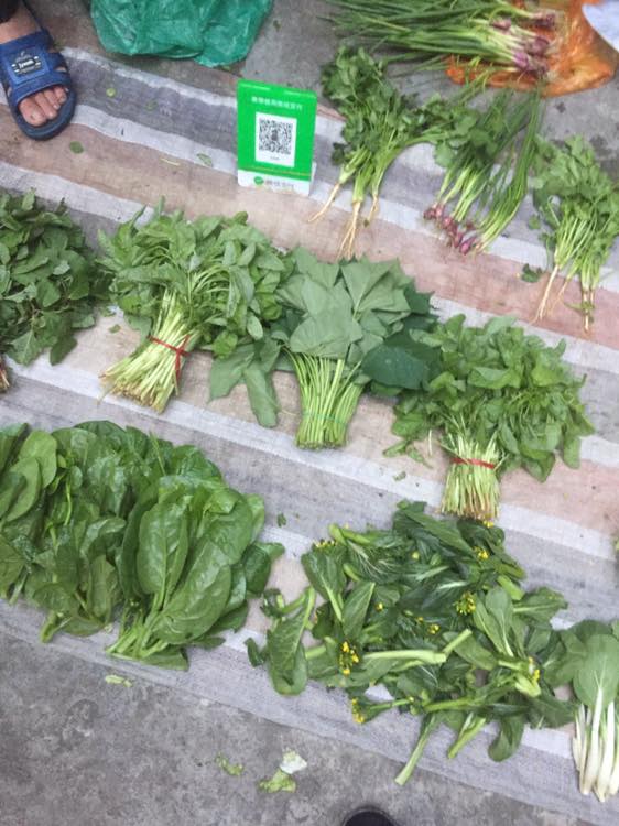 Một số quầy bán rau lẻ tại chợ, người mua cũng có thể dễ dàng thanh toán bằng hình thức chuyển khoản.