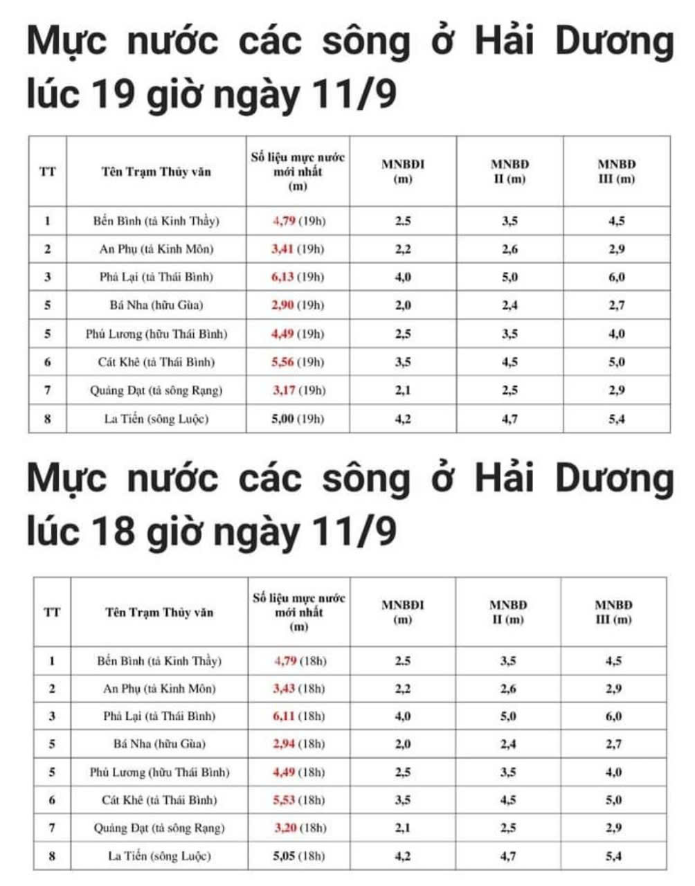 Theo Ban Chỉ huy Phòng chống thiên tai và Tìm kiếm cứu nạn tỉnh Hải Dương đến trưa 11/9 hệ thống đê điều thủy lợi của Hải Dương cơ bản ổn định an toàn Toàn tỉnh hiện có 2 điểm trọng yếu cấp tỉnh 36 điểm trọng yếu cấp huyện trên các tuyến đê Các vị trí đê xung yếu sụt lún đã được kiểm tra và thực hiện xử lý tuy nhiên vẫn còn nguy cơ tiềm ẩn có thể xảy ra tràn đê vỡ đê