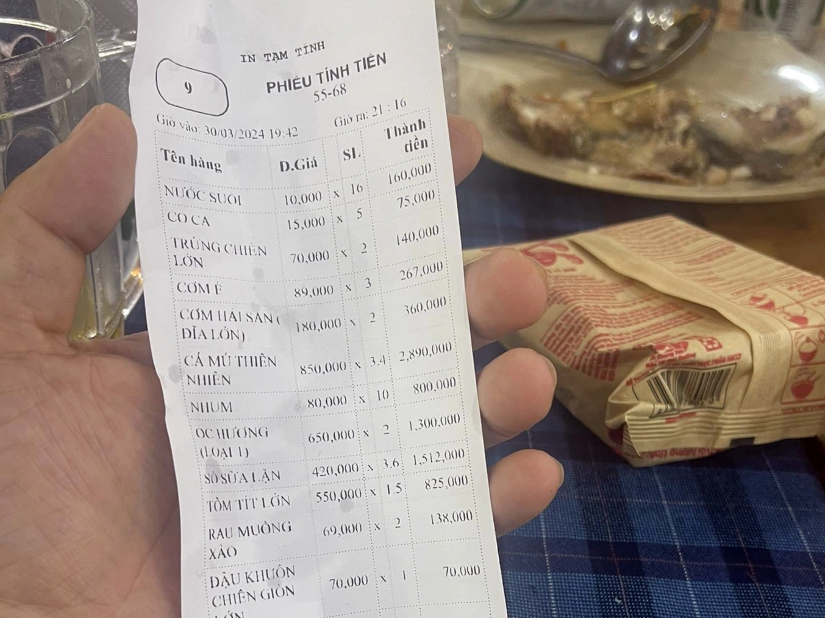 Anh C.P cho hay, tổng hóa đơn của đoàn là 9,5 triệu. Tuy nhiên trên thực tế, lượng thức ăn không nhiều, nhiều thành viên ăn chưa đủ no. Anh nói thêm rằng, mình từng tới quán ăn Thanh Sương trước đây nên nhận ra không phải địa chỉ này. Tuy nhiên, nhân viên nhiều lần khẳng định, địa chỉ này là số 15 Trần Phú cũ. Khi đoàn của anh C.P muốn chụp biển hiệu có ghi số 15 thì nhân viên từ chối.