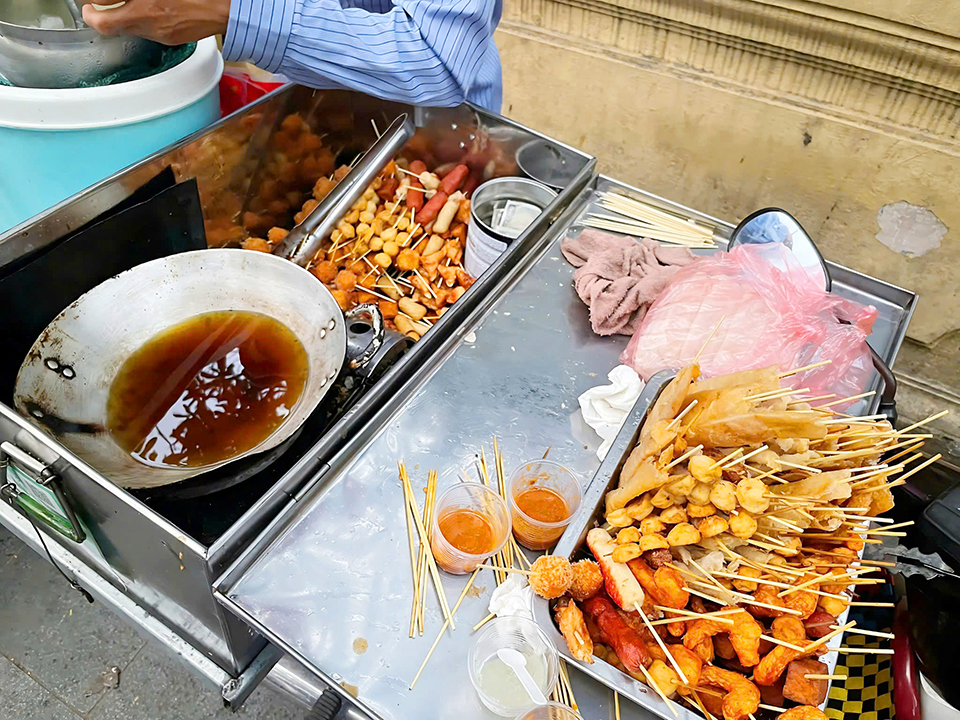 Các món ăn đường phố và quà vặt rất đa dạng: xiên nướng, bánh tráng trộn, bắp xào, trà sữa, chè, cá viên chiên, phá lấu… Đáp ứng được nhiều khẩu vị khác nhau từ mặn, ngọt đến cay, chua.