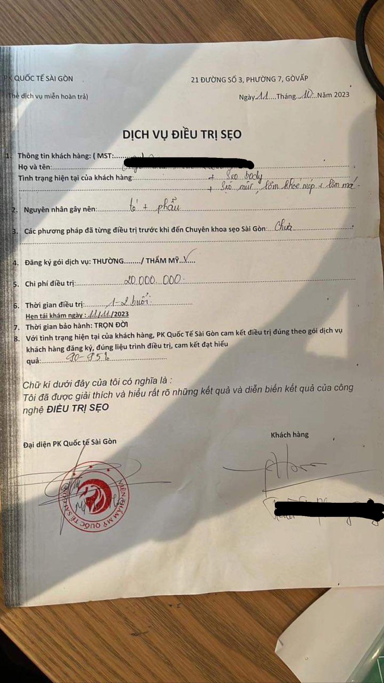 Tin tưởng với những cam kết và khẳng định chắc nịch của nhân viên Phòng khám Quốc tế Sài Gòn, và mong muốn trị được sẹo nên A. được mẹ đóng số tiền 20 triệu đồng để sử dụng dịch vụ.