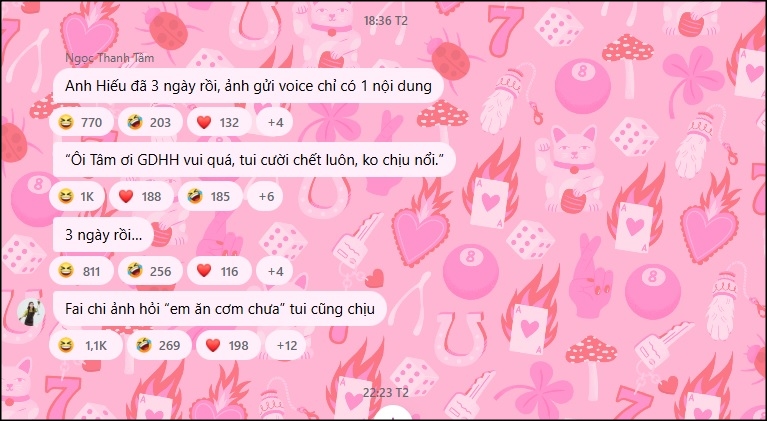 Tuy nhiên trong tin nhắn trò chuyện với người hâm mộ mới đây, Ngọc Thanh Tâm bất ngờ hé lộ động thái của Trọng Hiếu. Cô cho biết: "Anh Hiếu đã 3 ngày rồi mà anh gửi tin nhắn thoại chỉ có một nội dung. 3 ngày rồi, phải chi ảnh hỏi "em ăn cơm chưa" tôi cũng chịu".